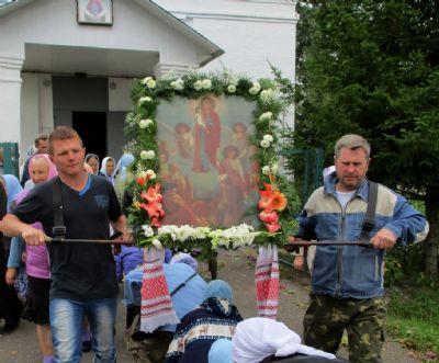 Каждый год крестоходцы идут с разными иконами Божией Матери. На сей раз это была «Всех скорбящих Радость» - храмовая икона церкви Рождества Иоанна Предтечи пос. Оршанка.