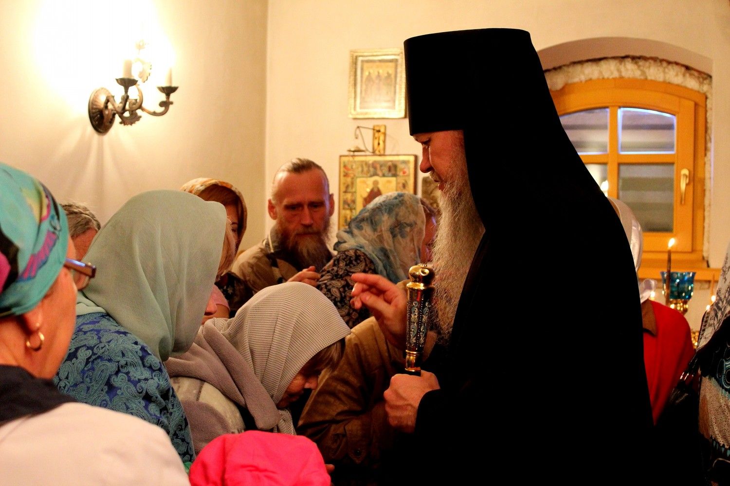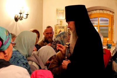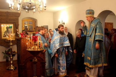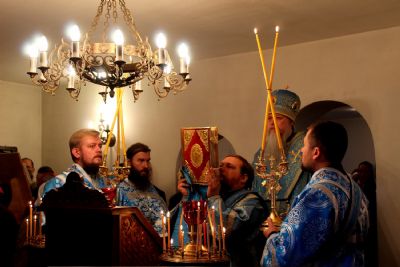 В завершение богослужения владыка Феофан с духовенством и прихожанами прочитали молитву перед святым образом Божией Матери. После чего Владыка преподнес всем присутствующим на молитвенную память икону Божией Матери «Всецарица», окропил всех святой водой и преподал своё архиерейское благословение.