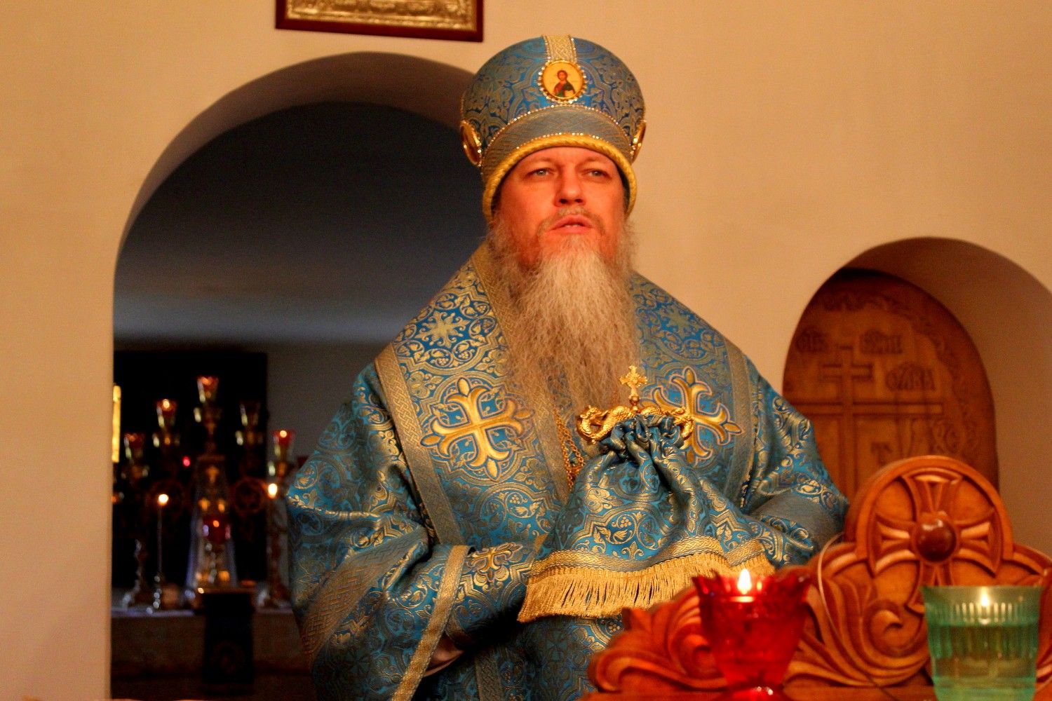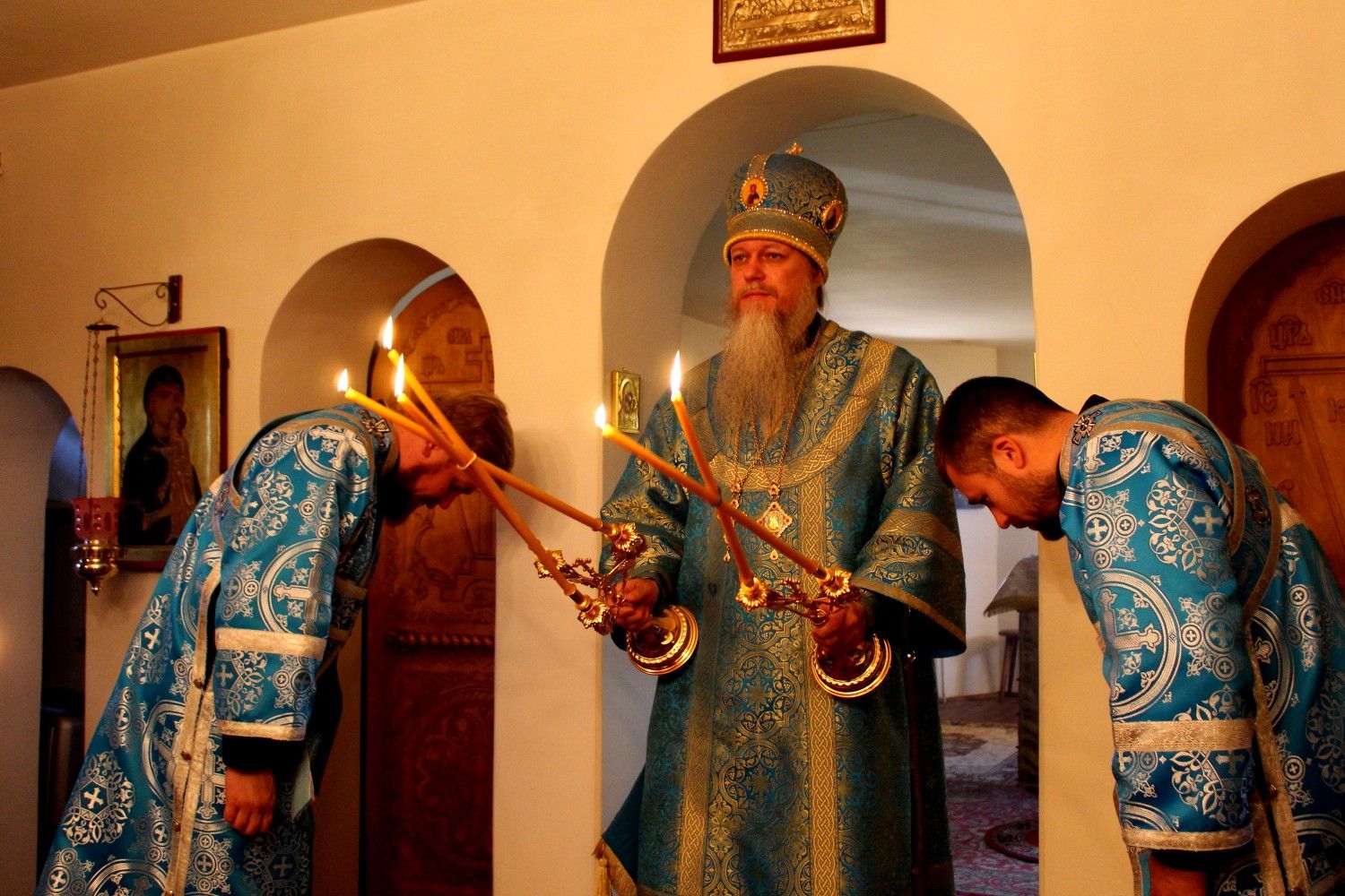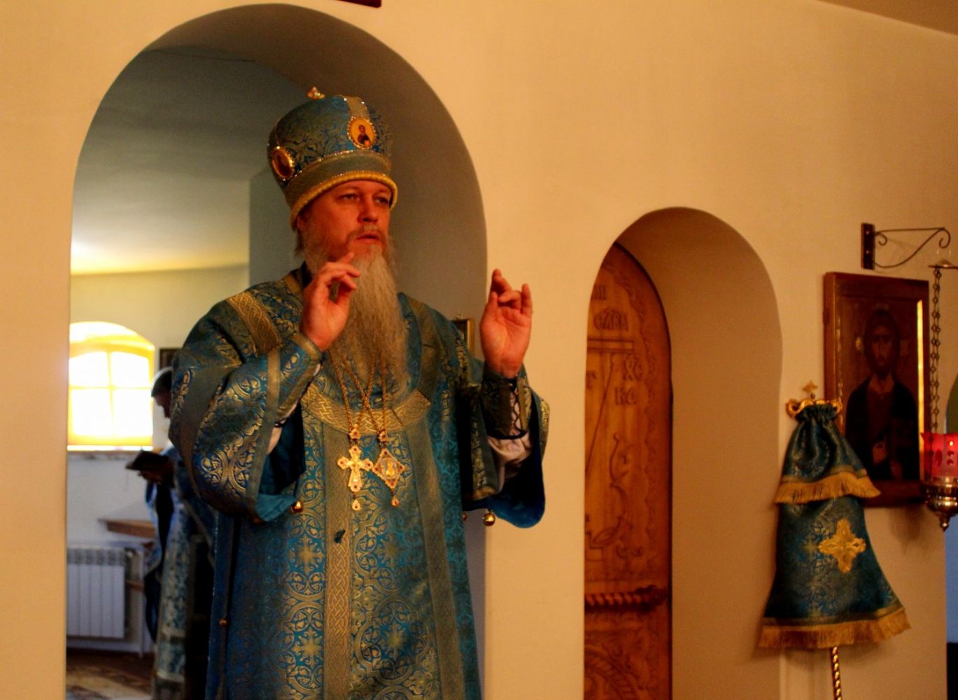 По окончании Божественной литургии епископ Феофан обратился к верующим со словами проповеди об иконе Божией матери «Всецарица», её истории и чудесах исцеления.