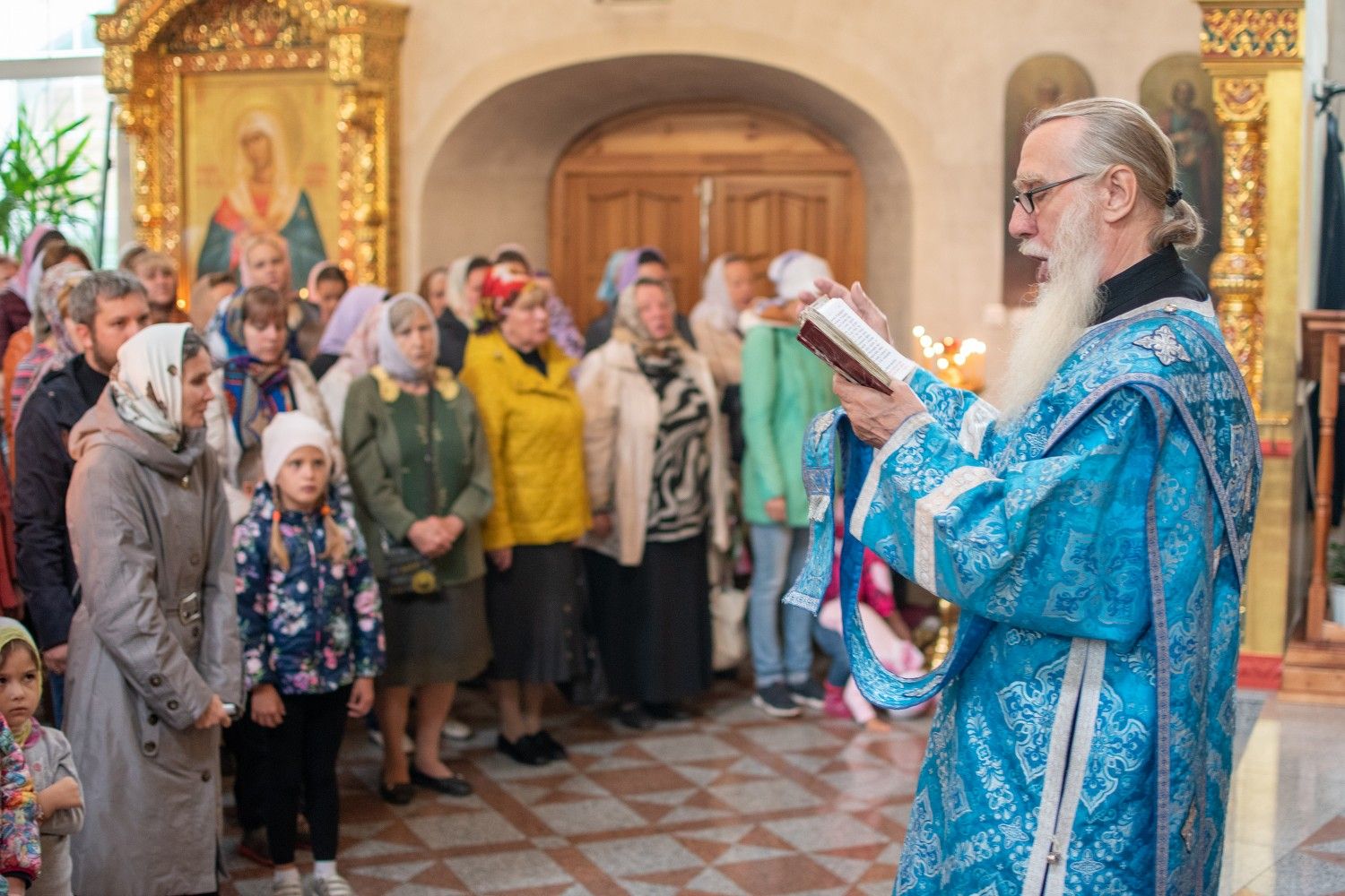 За Божественной литургией Владыке сослужили настоятель храма протоиерей Александр Бачурин, клирик храма диакон Димитрий Лукьянов и клирик храма Рождества Пресвятой Богородицы с. Семеновка протодиакон Михаил Козловский. Песнопения исполнял хор храма.