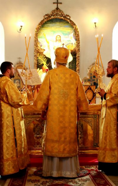 8 сентября, в праздник сретения Владимирской иконы Пресвятой Богородицы в память освобождения Руси от нашествия Тамерлана, епископ Волжский и Сернурский Феофан совершил Божественную литургию в Никольском кафедральном соборе г. Волжска.