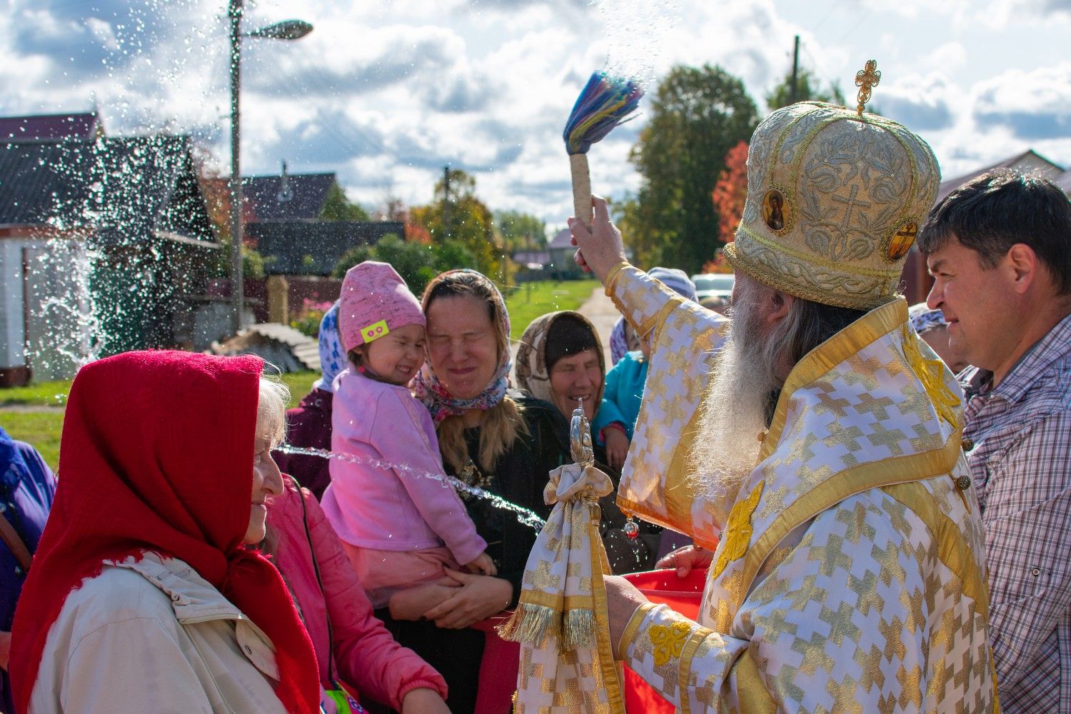 15 сентября, в 13-ю неделю по Пятидесятнице и день памяти мученика Маманта и благоверных князя Петра и княгини Февронии, митрополит Йошкар-Олинский и Марийский Иоанн возглавил Божественную литургию в Троицком храме с. Вятское.