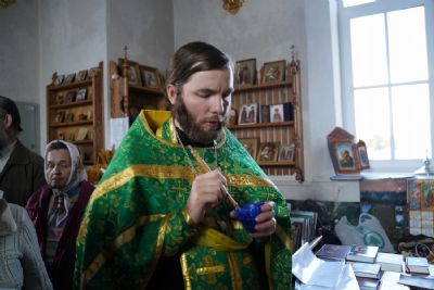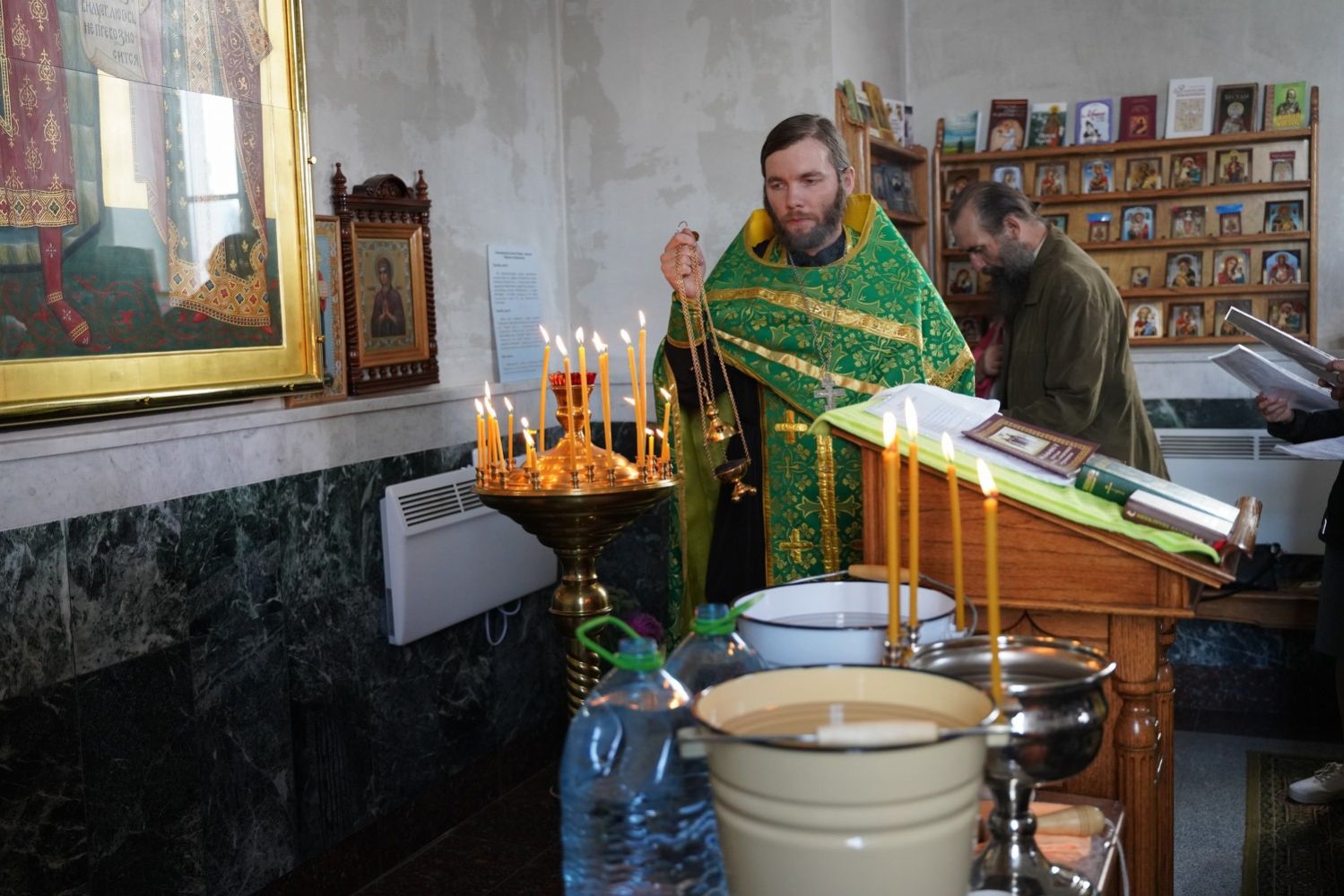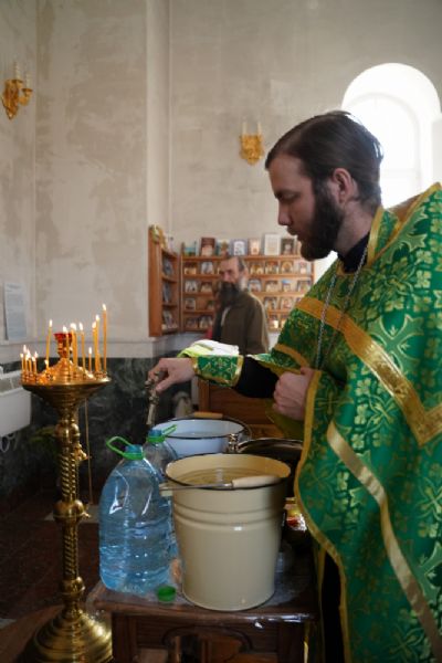 В 12.30 в часовне состоялся водосвятный молебен с акафистом святым. Желающих почтить память любимых святых было много - часовня не смогла вместить всех желающих - часть людей стояла у входа.