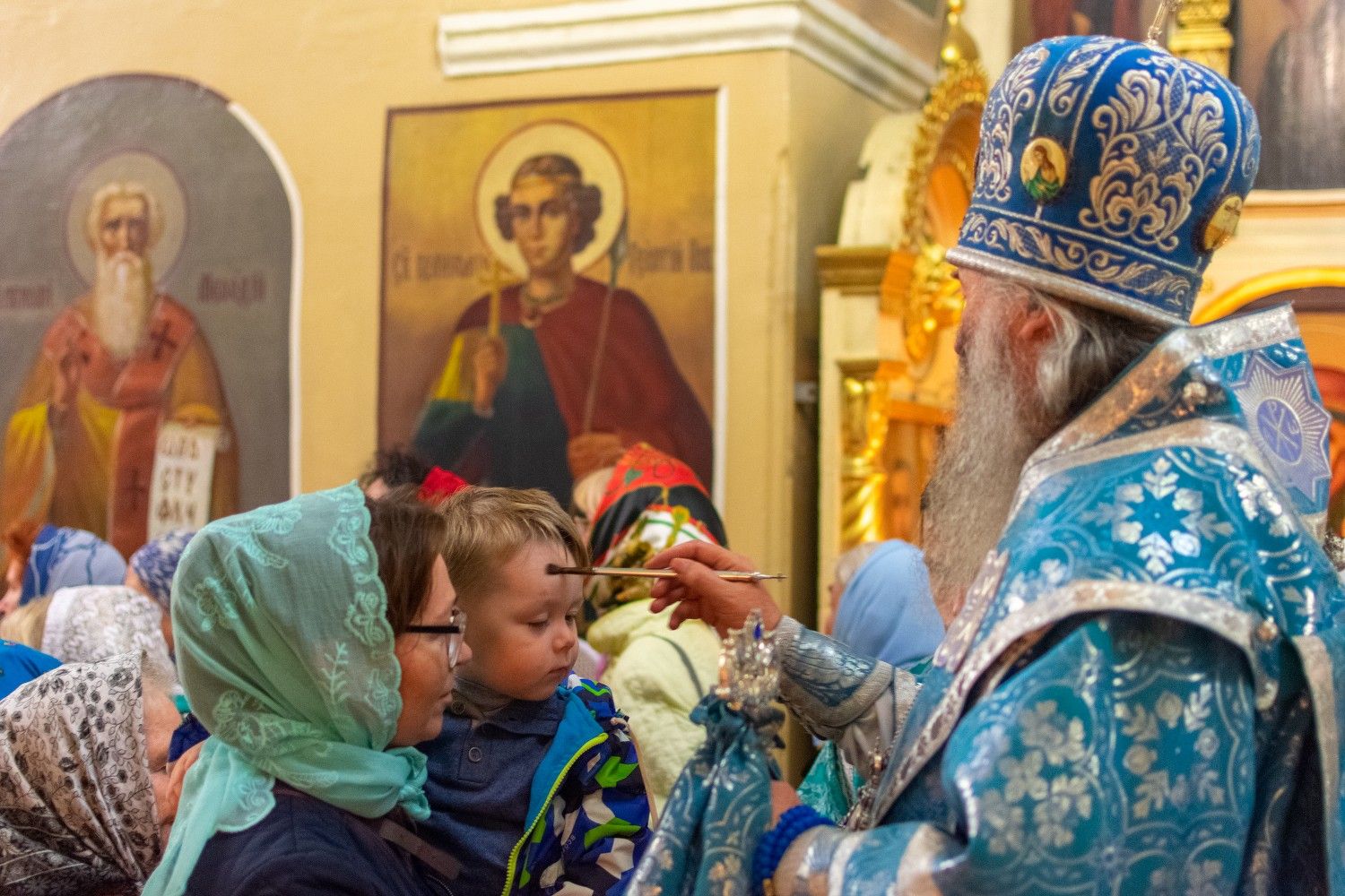 Митрополит Иоанн помазывал прихожан святым елеем во время чтения праздничного канона.