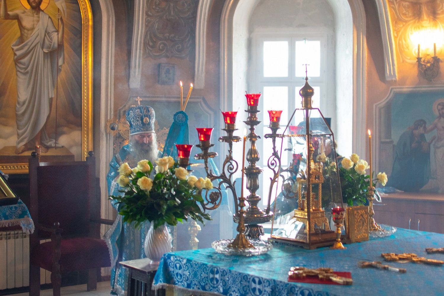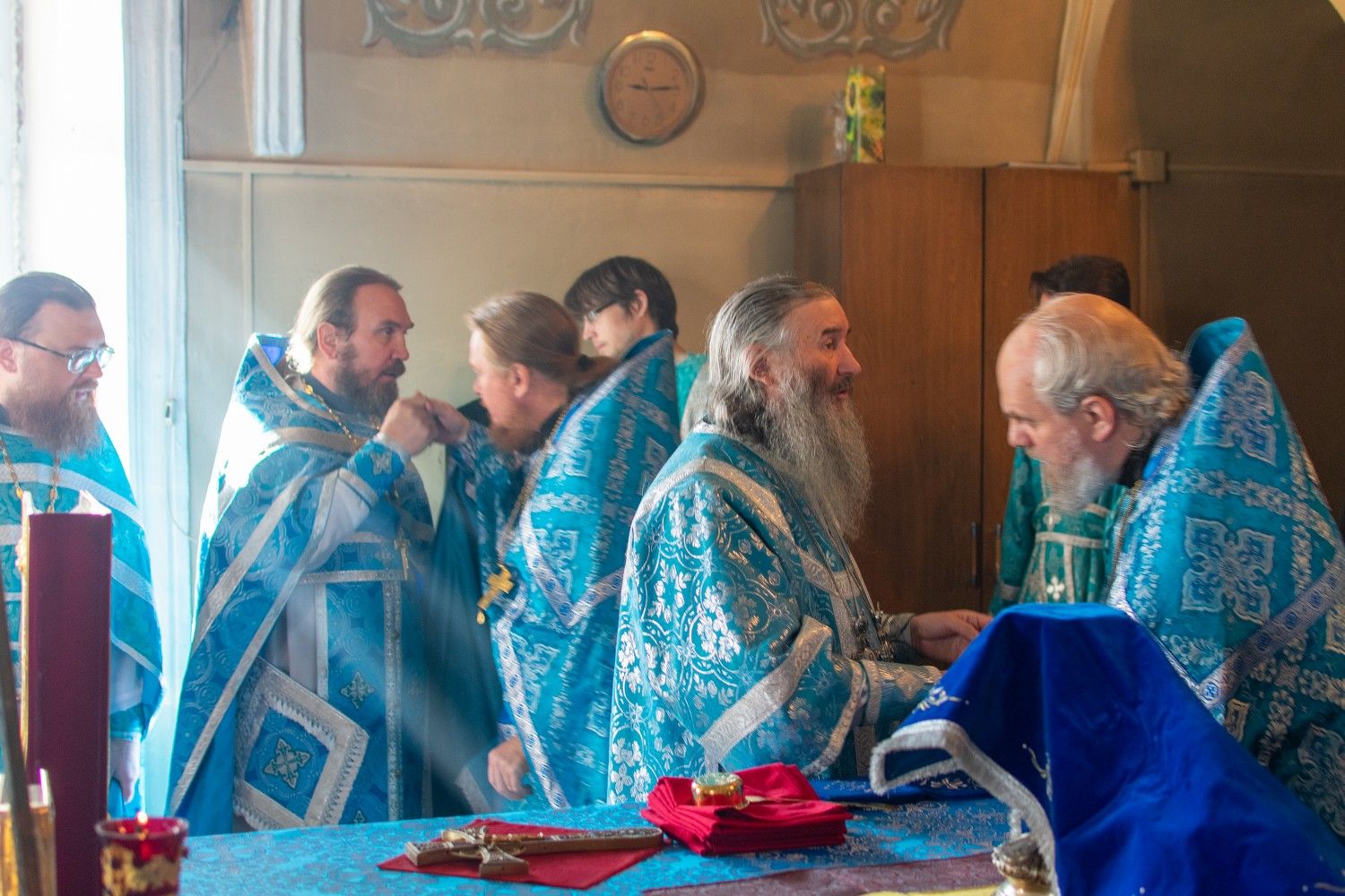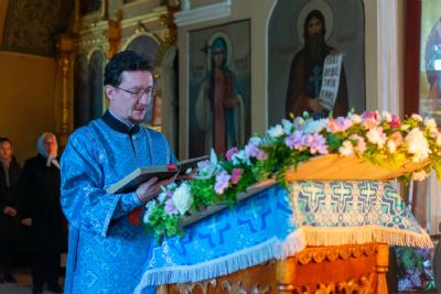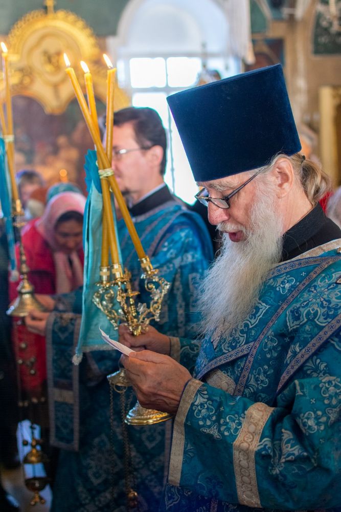 Богослужение началось торжественной встречей. В честь праздника совершалась лития с освящением хлеба, пшеницы, вина и елея. Читались паремии из книг Ветхого Завета прообразующие Божию Матерь.