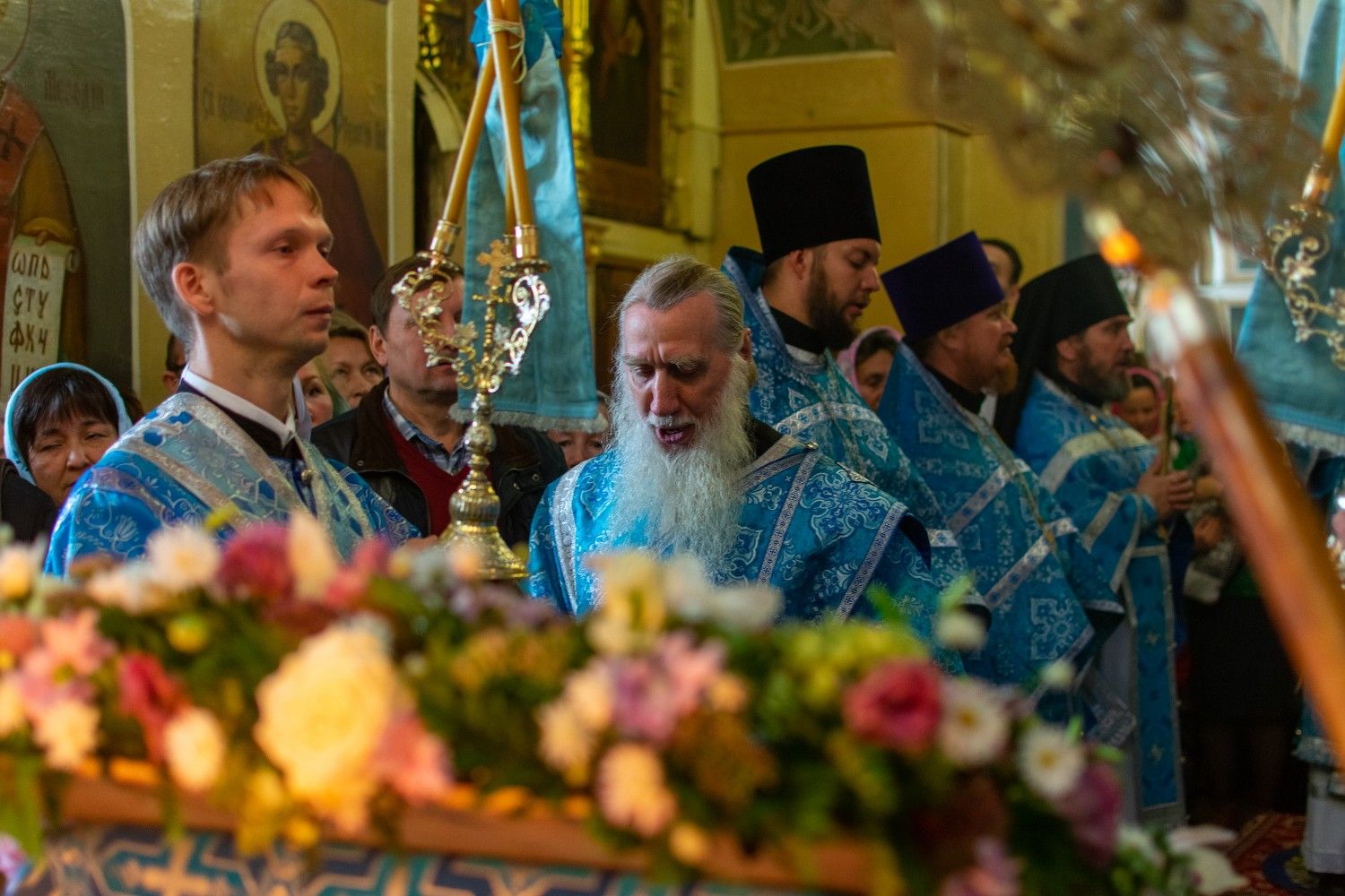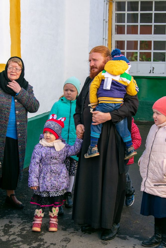 После Литургии прошёл крестный ход вокруг храма с кроплением святой водой и чтением Евангелия.