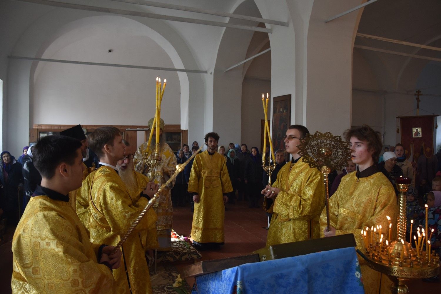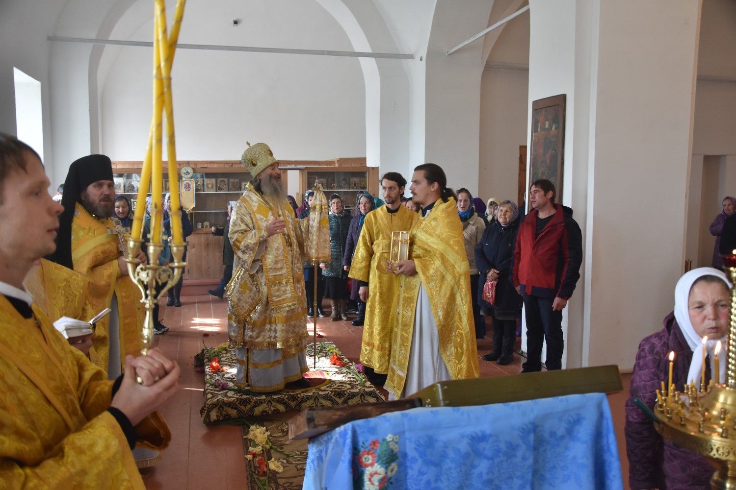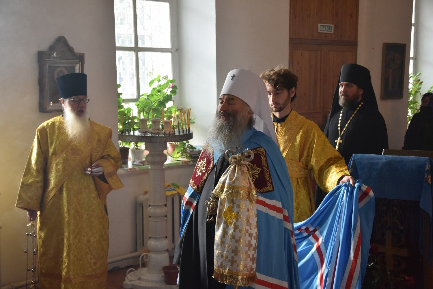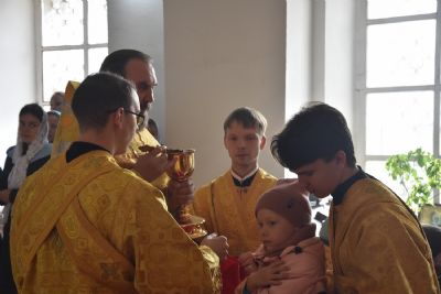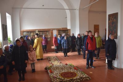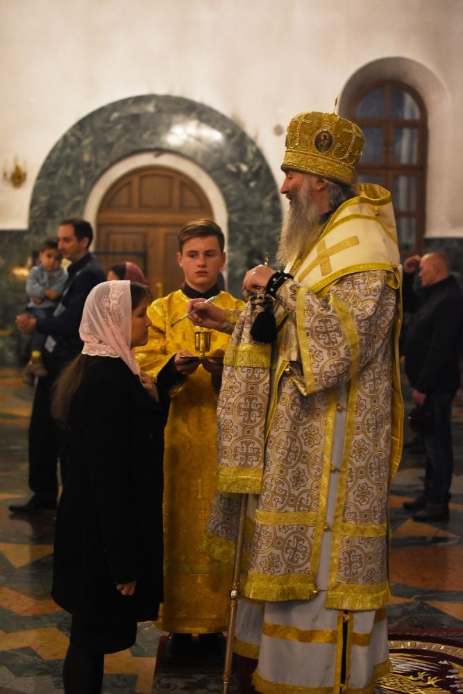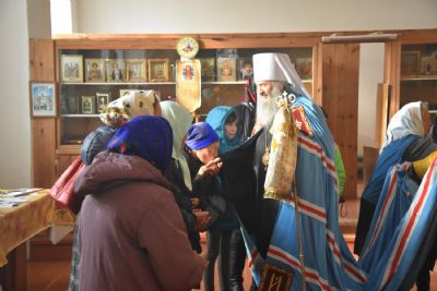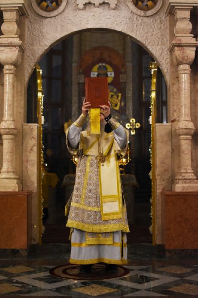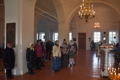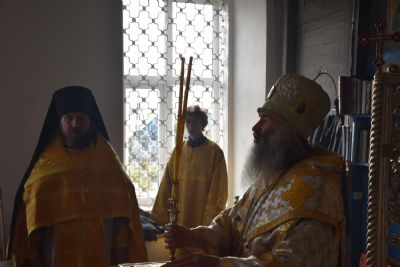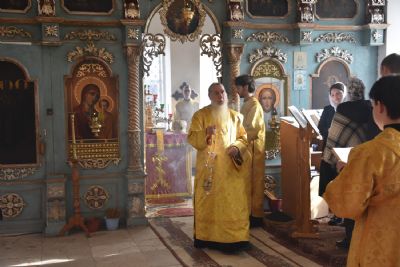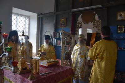 Богослужение началось торжественной встречей архиерея. Читались отрывки из послания апостола Павла Коринфянам о радости и огорчениях и из Евангелия от Матфея притча о брачном пире.