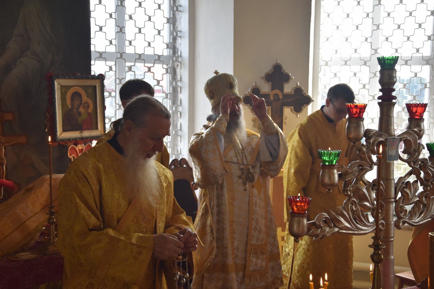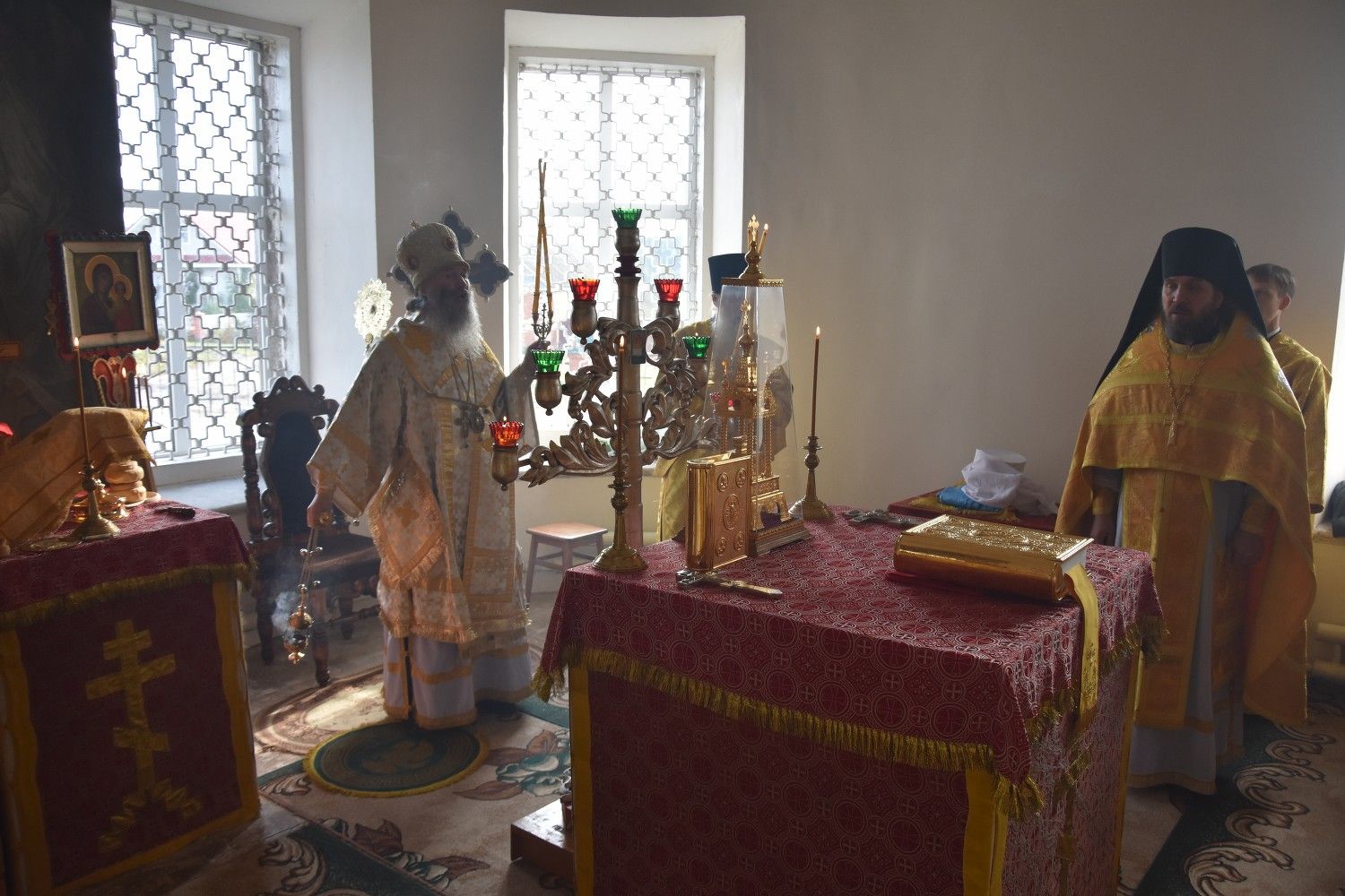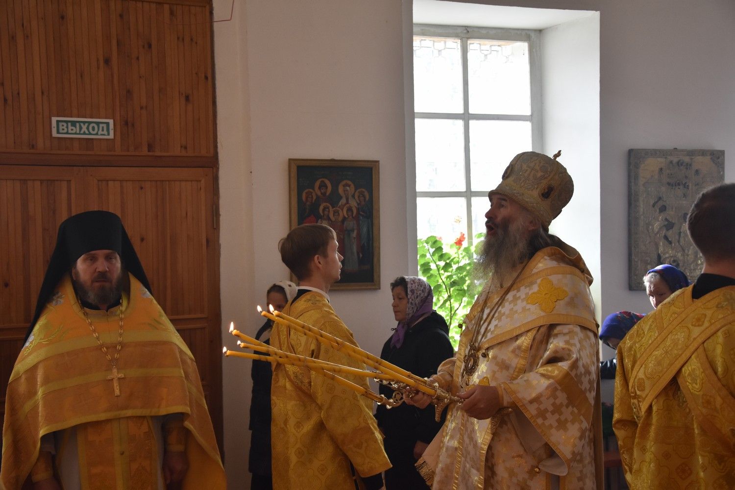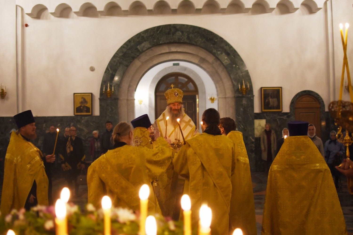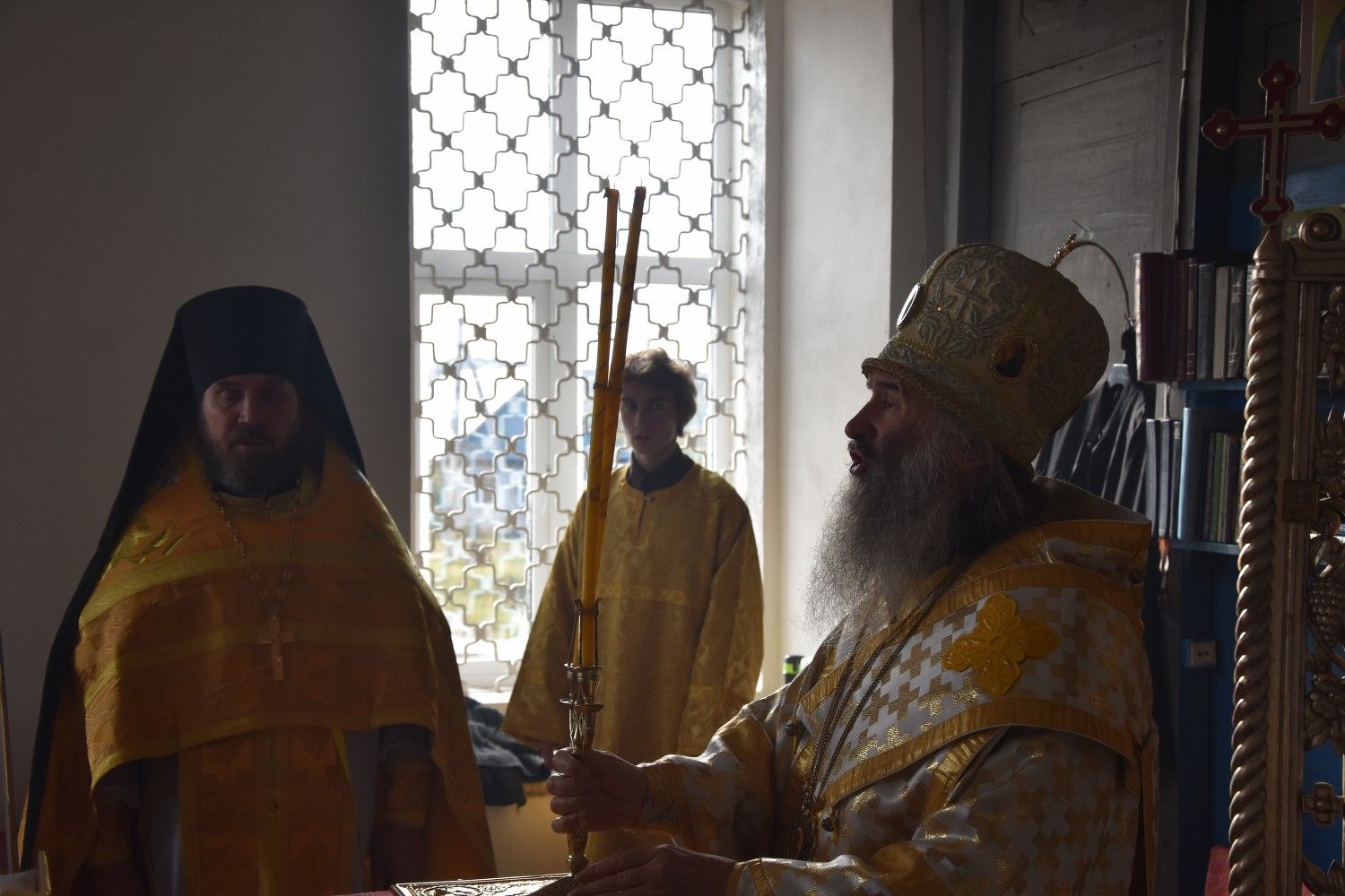 Богослужение началось торжественной встречей архиерея. Читались отрывки из послания апостола Павла Коринфянам о радости и огорчениях и из Евангелия от Матфея притча о брачном пире.