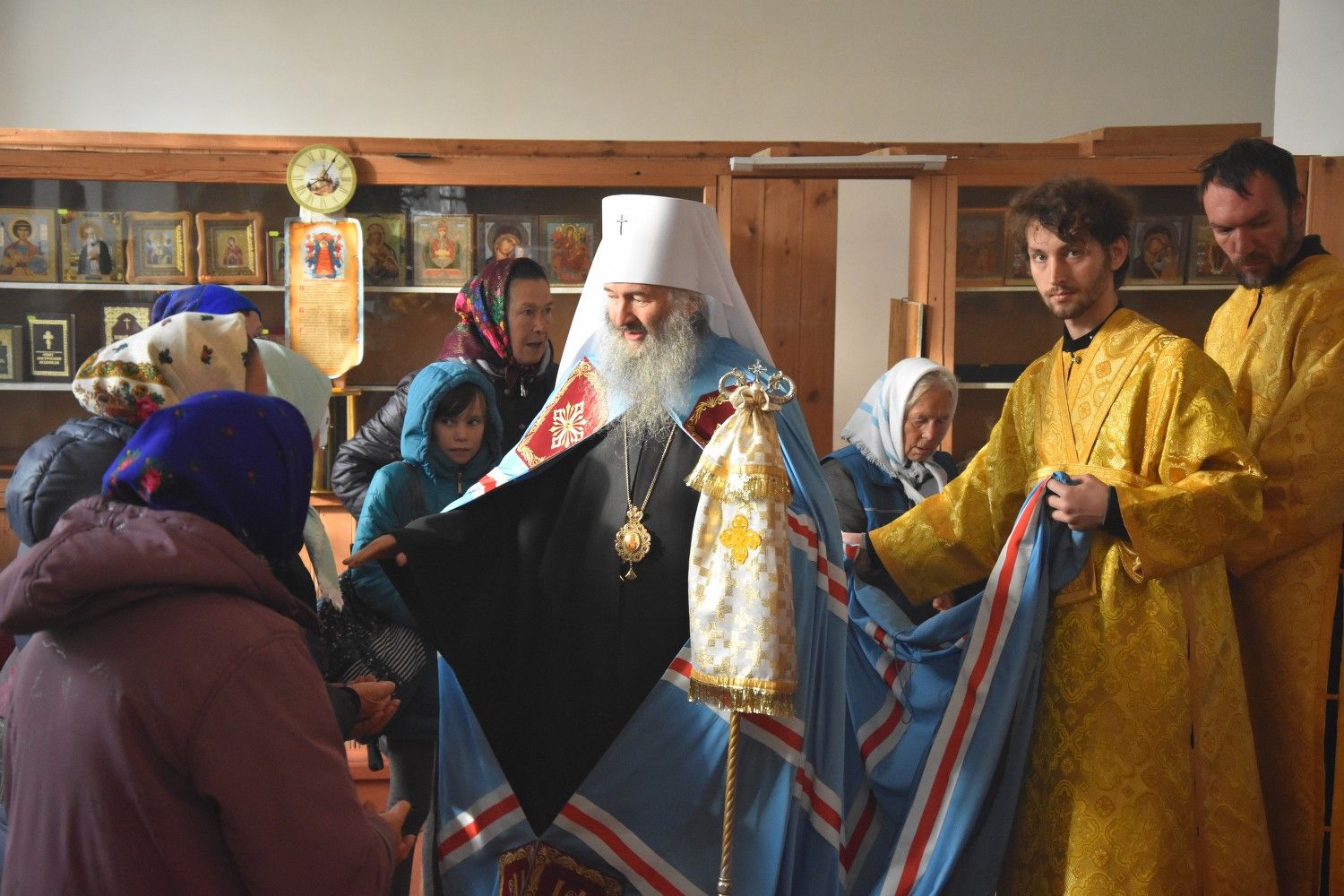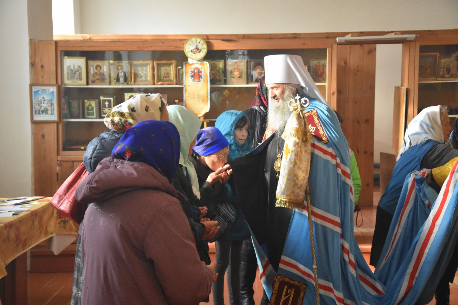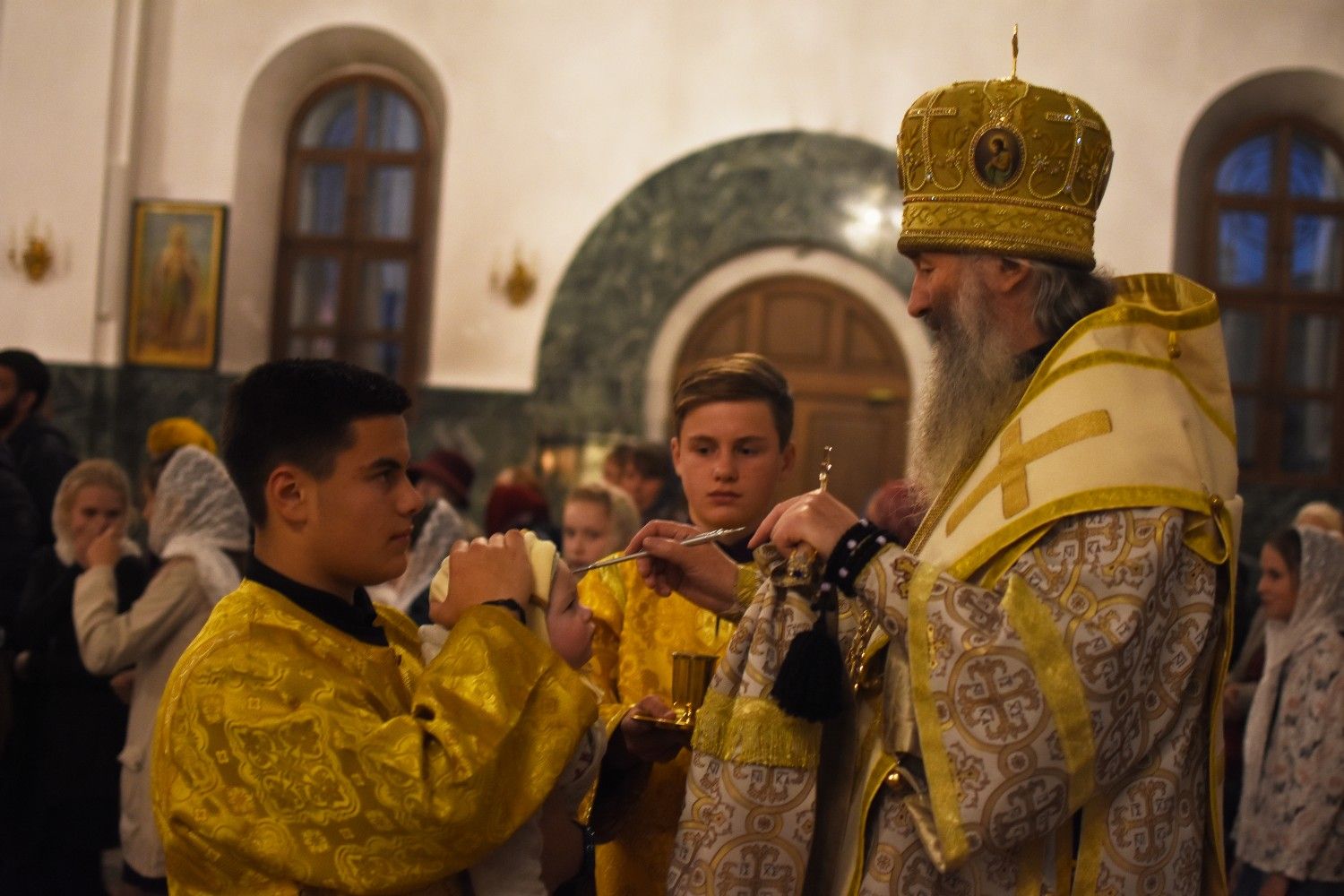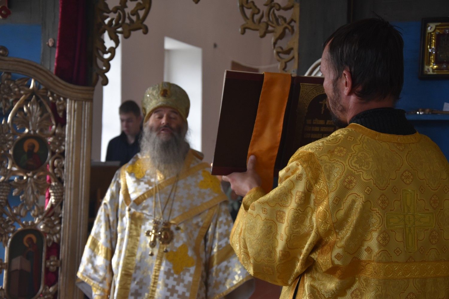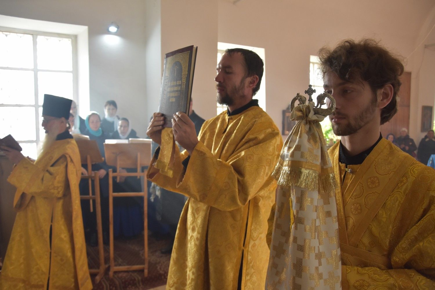 Богослужение началось торжественной встречей архиерея. Читались отрывки из послания апостола Павла Коринфянам о радости и огорчениях и из Евангелия от Матфея притча о брачном пире.
