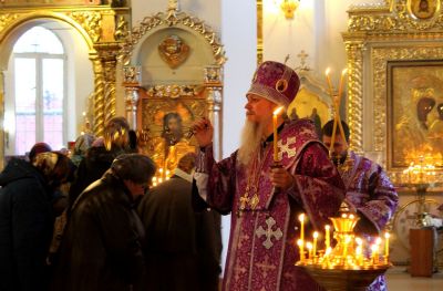 27 сентября, в канун праздника Воздвижения Честного и Животворящего Креста Господня, епископ Волжский и Сернурский Феофан совершил Всенощное бдение в Никольском кафедральном соборе г. Волжска.