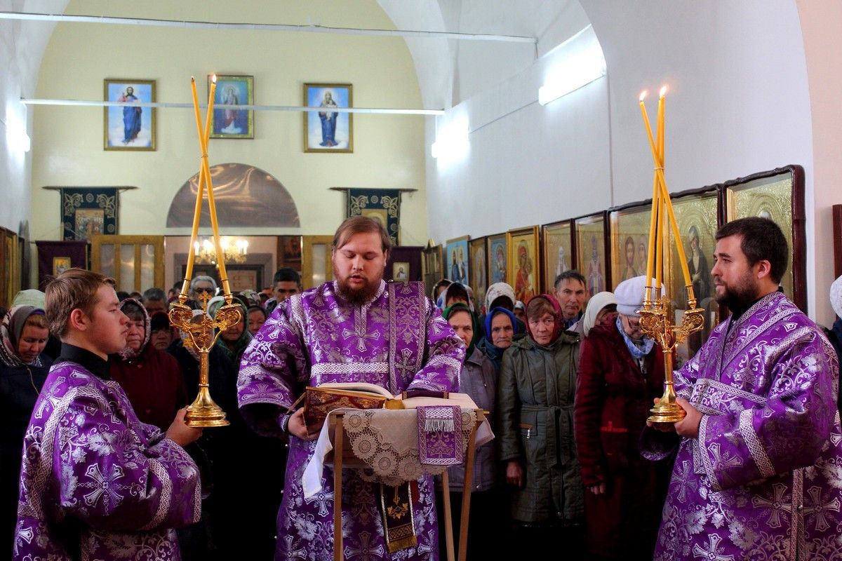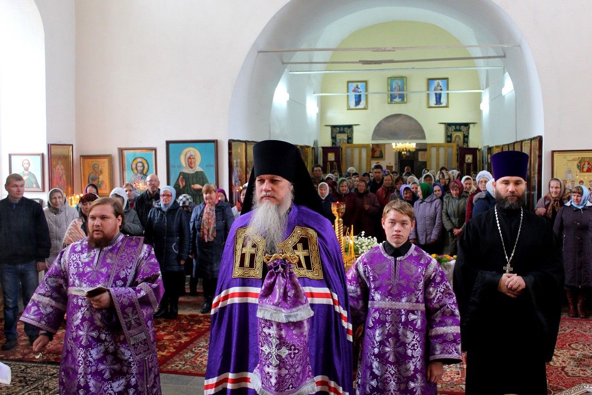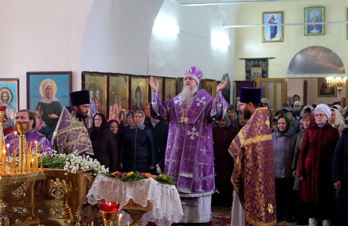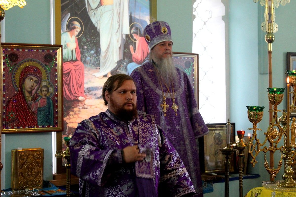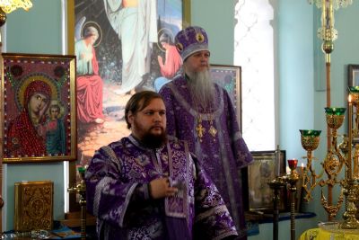 Его Преосвященству сослужили: протоиерей Владимир Власов - благочинный Северного церковного округа; протоиерей Сергий Сильдушкин - настоятель храма Покрова Пресвятой Богородицы с. Марисола; диакон Иоанн Захаров - клирик Никольского собора г. Волжска.