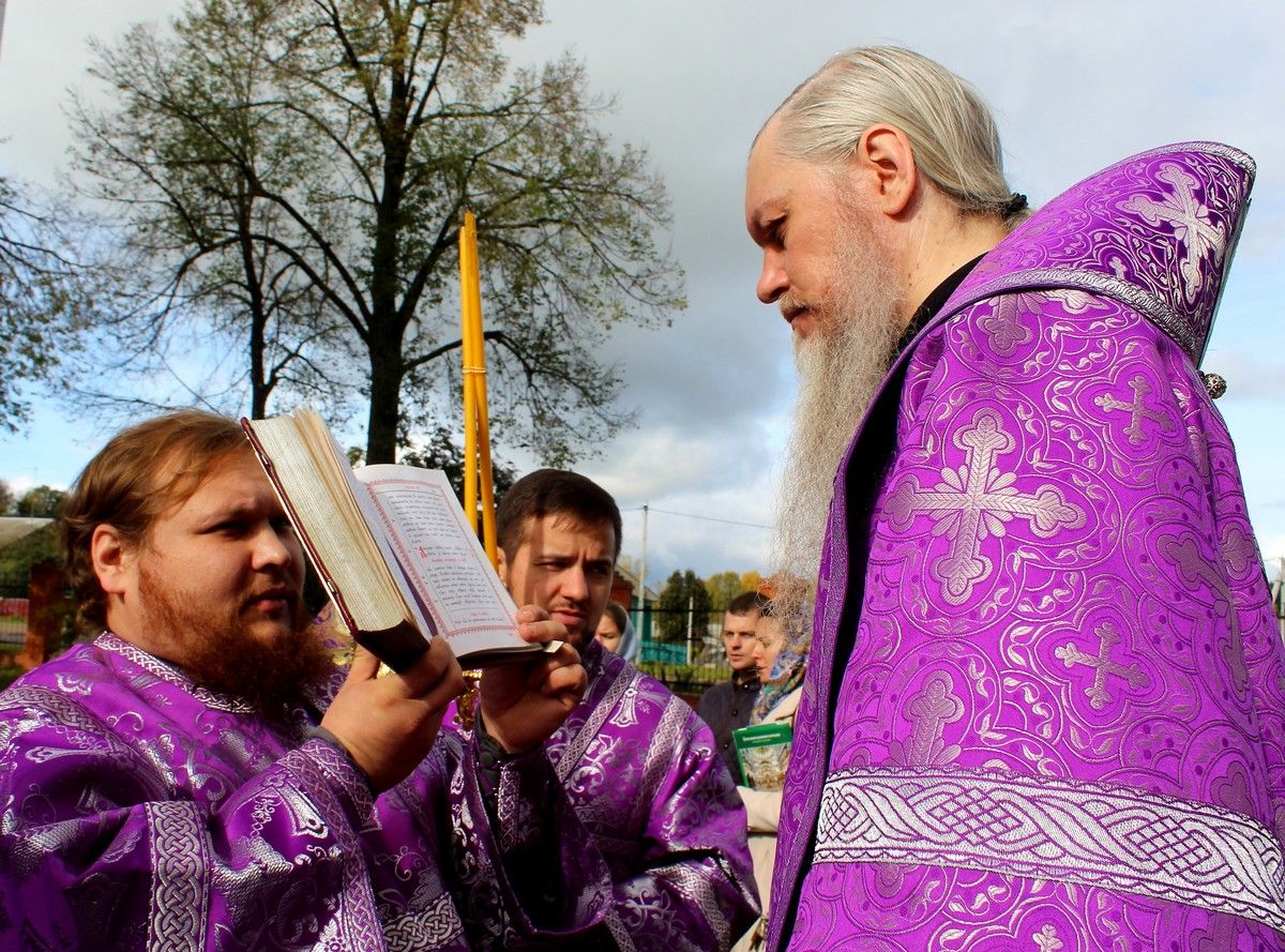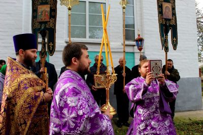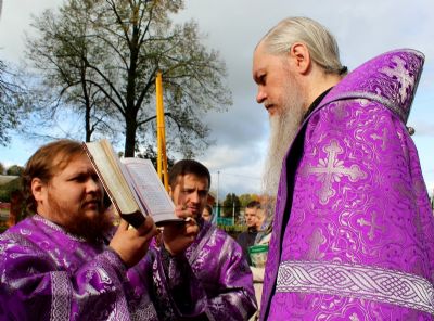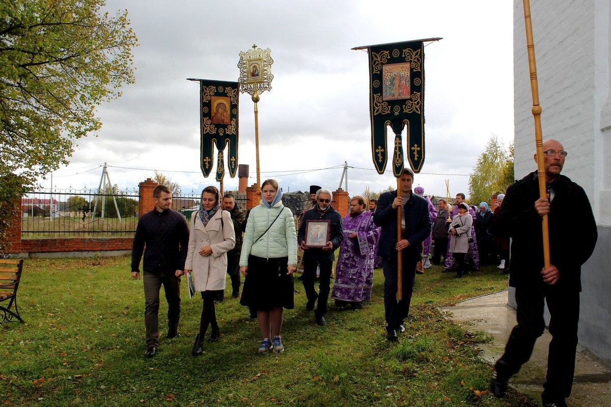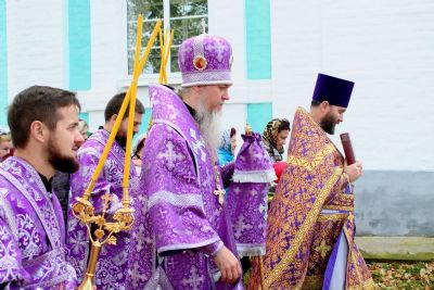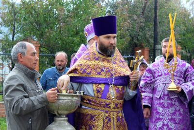 По окончании богослужения епископ Феофан, духовенство и прихожане совершили крестный ход вокруг храма, после чего владыка поздравил всех с престольным праздником и обратился к верующим со словами проповеди: «Во имя Отца и Сына и Святого Духа! Возлюбленные о Господе всечестные отцы, братья и сёстры! Сегодня, по Милости Божией, мы собрались в этом прекрасном храме, чтобы прославить Бога, преклониться Его Честному и Животворящему Кресту и вместе с тем порадоваться престольному празднику, ибо главный престол в этом храме освящён в честь Воздвижения Честного и Животворящего Креста Господня.