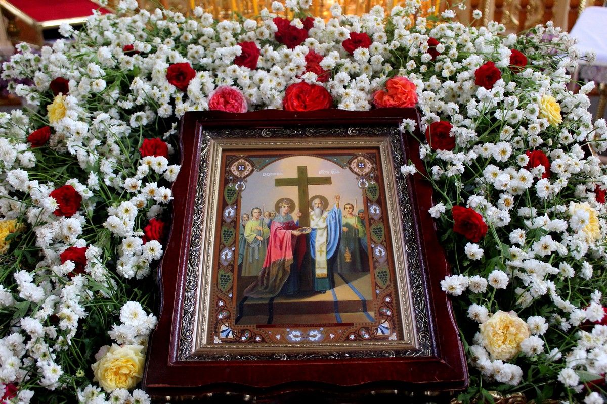 Желая, чтобы люди могли почитать святыню, которую Господь оставил на земле - Его Крест, святой равноапостольный царь Константин отправляет в Иерусалим свою мать - святую равноапостольную царицу Елену. Несмотря на свой преклонный возраст, царица Елена с ревностью отправилась в святой град Иерусалим отыскать Крест, на котором был распят Господь наш Иисус Христос. Прибыв в Иерусалим, царица Елена после долгих поисков нашла место, где под искусственным холмом, на котором было капище ложной богини Венеры, находился Гроб Господень. По повелению царицы Елены капище было разрушено, слои земли разрыты и люди увидели пещеру Гроба Господня, рядом лежащие три креста и дощечку, на которой была написана вина Спасителя еврейскими, римскими, греческими буквами, а также четыре гвоздя, которыми был пригвождён Спаситель ко Кресту. Святитель Макарий, Патриах Иерусалимский, пожелал узнать, какой из этих Крестов принадлежал Спасителю. Тогда решили, что Крест Господень обязательно проявит свою Животворящую силу. И стали по очереди прикладывать эти кресты к телу усопшего человека. Когда Крест Господень коснулся тела усопшего, то его животворящая сила проявилась в том, что Господь вернул душу усопшего человека в тело, и он воскрес из мёртвых у всех на глазах. Люди, видя это чудо, стали прославлять Бога. И тогда Макарий, Патриарх Иерусалимский, поднявшись со священнослужителями на возвышенное место, стал воздвигать Крест Господень, чтобы люди, во множестве собравшиеся туда, могли поклониться Кресту. Люди, благоговейно воспевая молитву: «Господи, помилуй» поклонялись воздвигнутому вверх Кресту. Это событие произошло в 326 году по Рождестве Христовом. И с тех пор этот праздник отмечается Святой Церковью и именуется Воздвижение, т.е. возвышение для всеобщего поклонения, Честного и Животворящего Креста Господня.