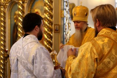 После Евхаристического канона была совершена хиротония иподиакона Андрея Легостаева во диакона. Сорокоуст и дальнейшее служение новорукоположенный диакон Андрей будет проходить в соборе святителя Николая Мирликийского г. Волжска.