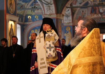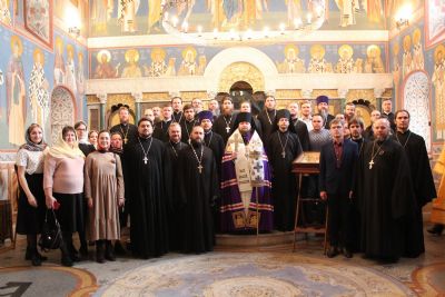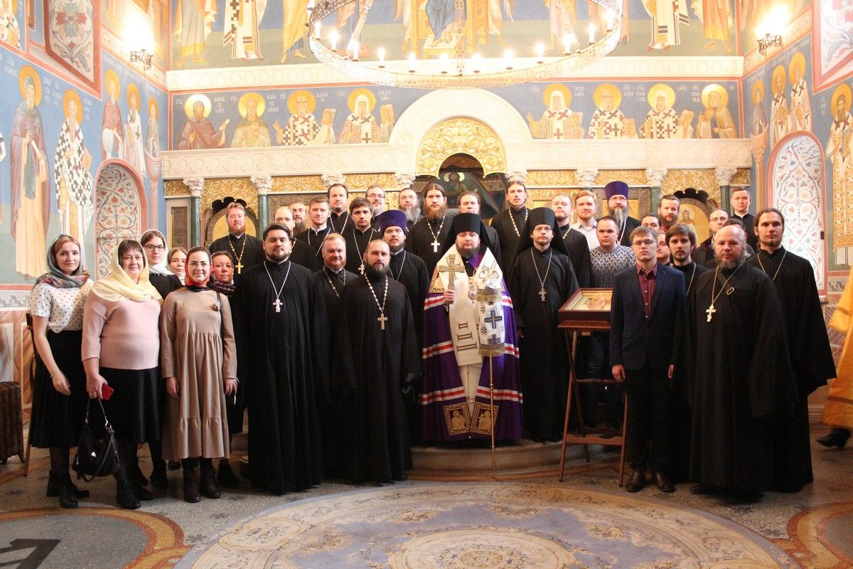 Его Преосвященству сослужил проректор по учебной работе Общецерковной аспирантуры и докторантуры имени святых Кирилла и Мефодия иеромонах Павел (Черкасов), заместитель председателя Синодального отдела по делам молодёжи Русской Православной Церкви иерей Алексий Соловьёв, настоятель Храма святой мученицы Татианы при Омском Государственном Университете протоиерей Александр Алексеев, руководитель отдела Уфимской епархии по работе с молодёжью протоиерей Николай Туктаров.