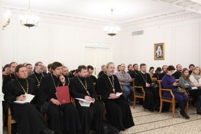 После молебна епископ Серафим выступил в актовом зале Общецерковной аспирантуры с лекцией о развитии современной церковной миссии в молодёжной среде.