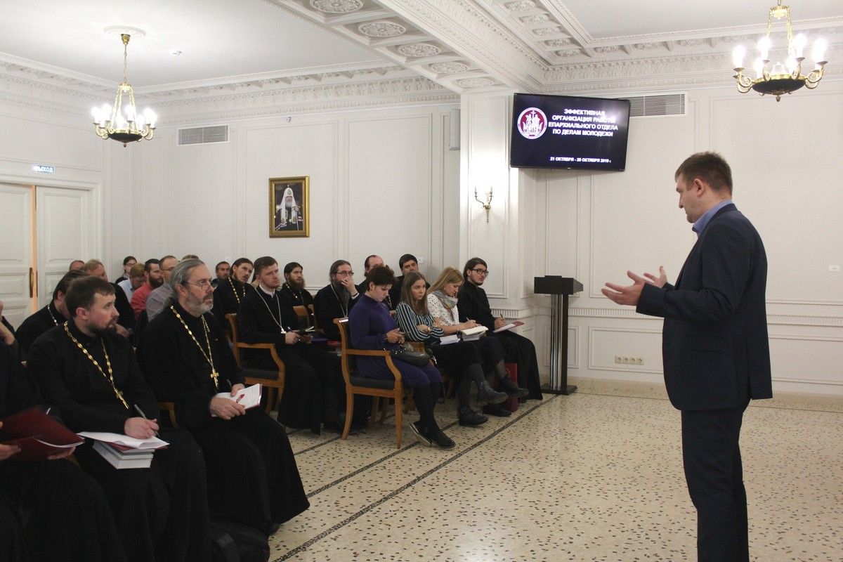 На образовательном мероприятии, призванном повысить уровень квалификации специалистов епархиальных молодёжных отделов, с лекцией на тему «Организация работы с молодёжью в городских муниципальных образованиях» выступил заместитель председателя Комитета общественных связей и молодёжной политики города Москвы Артём Дёмин.