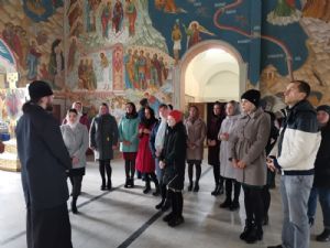 Студенты оценили внешнее и внутреннее убранство храма, поднялись на клирос, откуда открывается прекрасный вид на многоярусный алтарь и расписанные евангельскими сюжетами храмовые своды. Экскурсанты остались под большим впечатлением, планируют продолжать изучение истории этого замечательного храма.