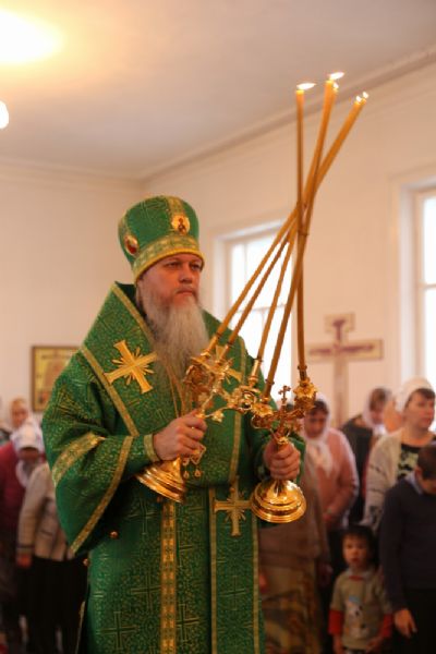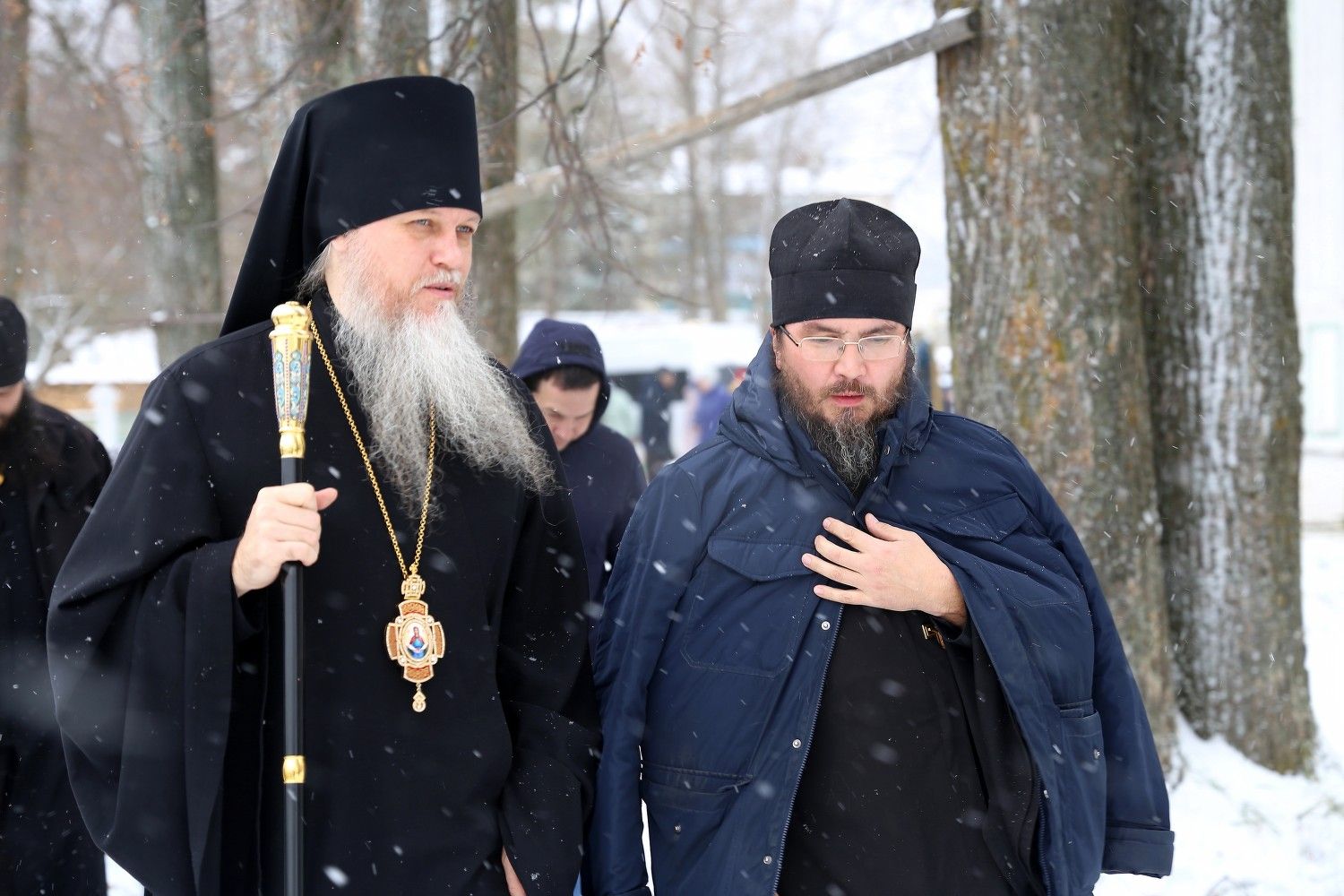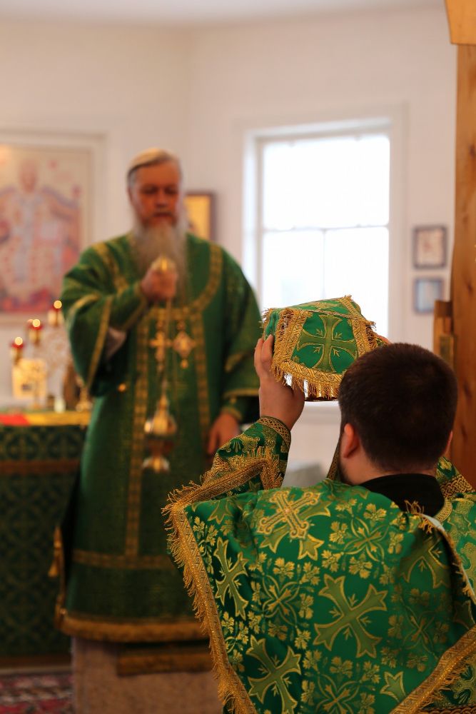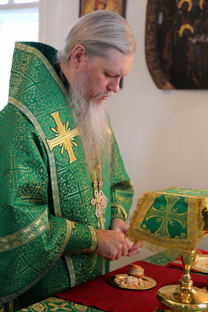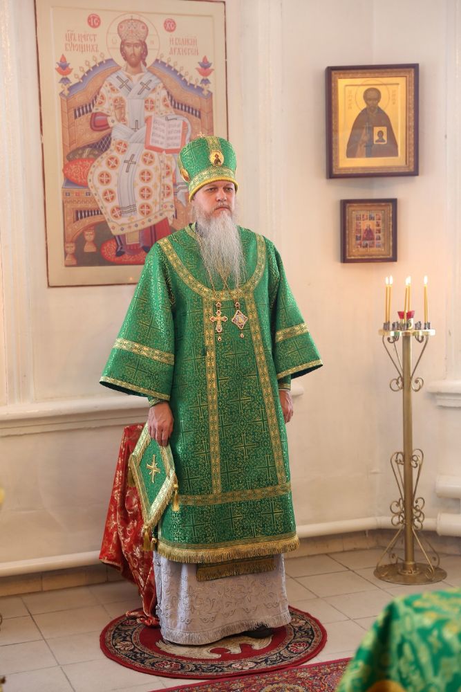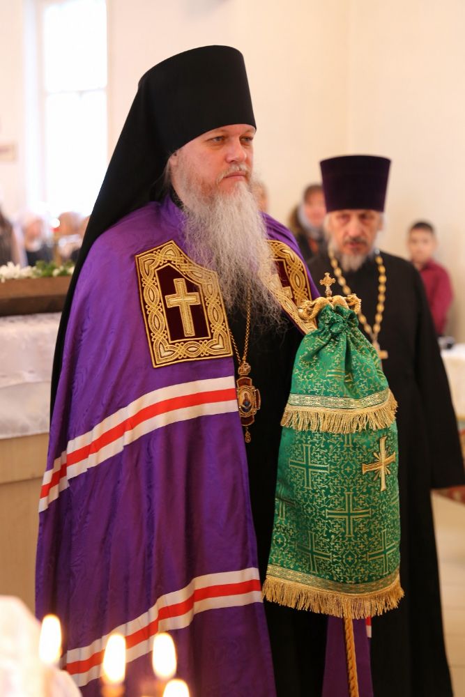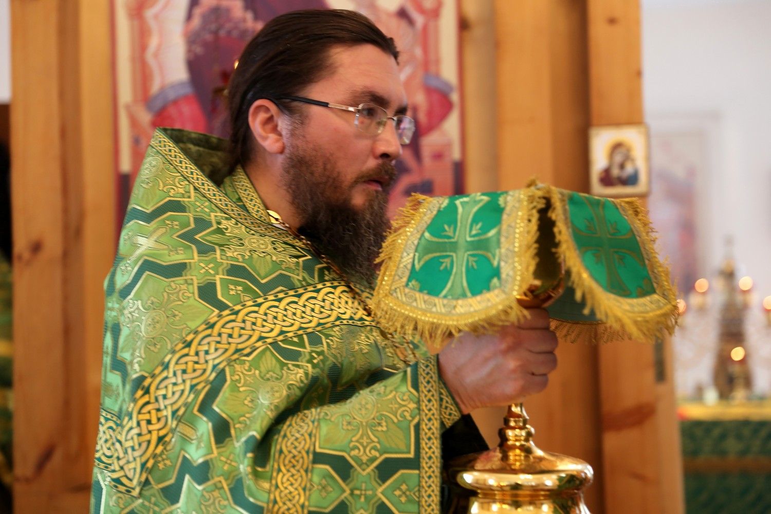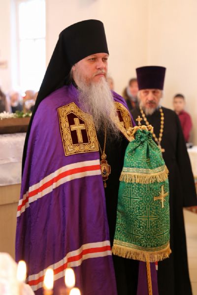 Его Преосвященству сослужили: настоятель храма в честь преподобномученика Андрея Критского с. Елембаево протоиерей Сергий Бажанов; настоятель Сретенского храма с. Кучки Оршанского района Йошкар-Олинской епархии протоиерей Алексий Вязов; настоятель храма святых бессребреников Космы и Дамиана с. Нырья Кукморского района Казанской епархии протоиерей Леонид Прокопьев; клирик храма в честь святого праведного Иоанна Кронштадтского г. Волжска иерей Матфей Сапаев и диакон Никольского собора г. Волжска Андрей Легостаев.