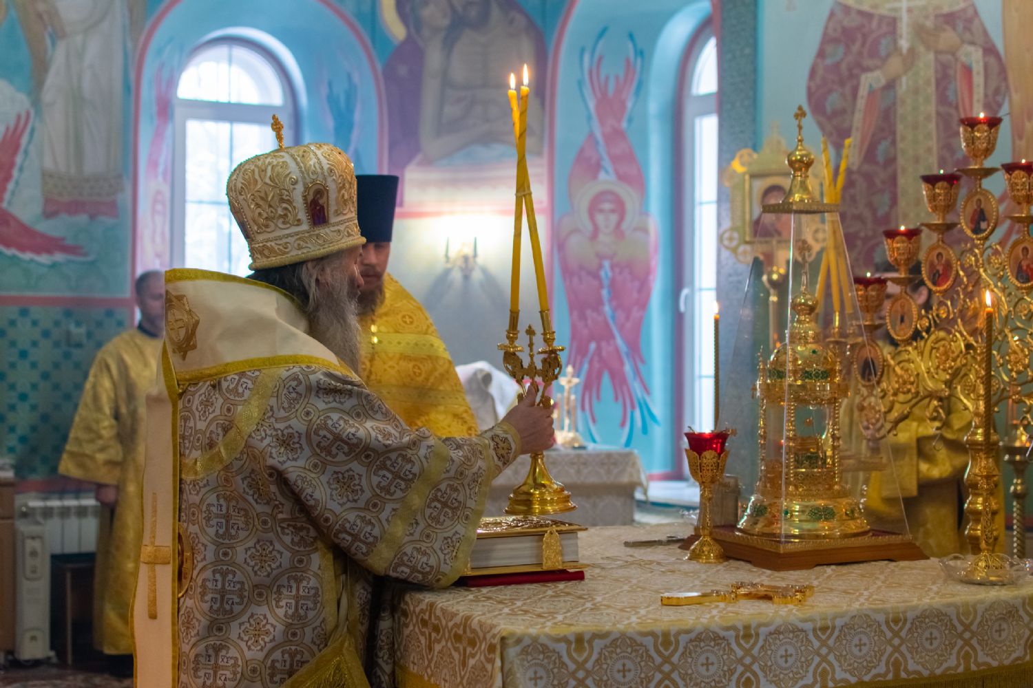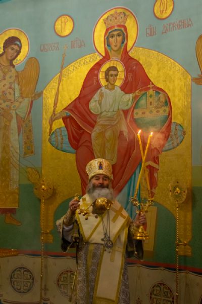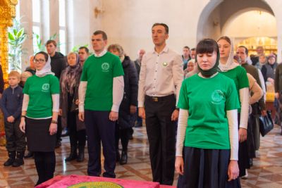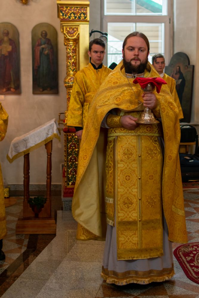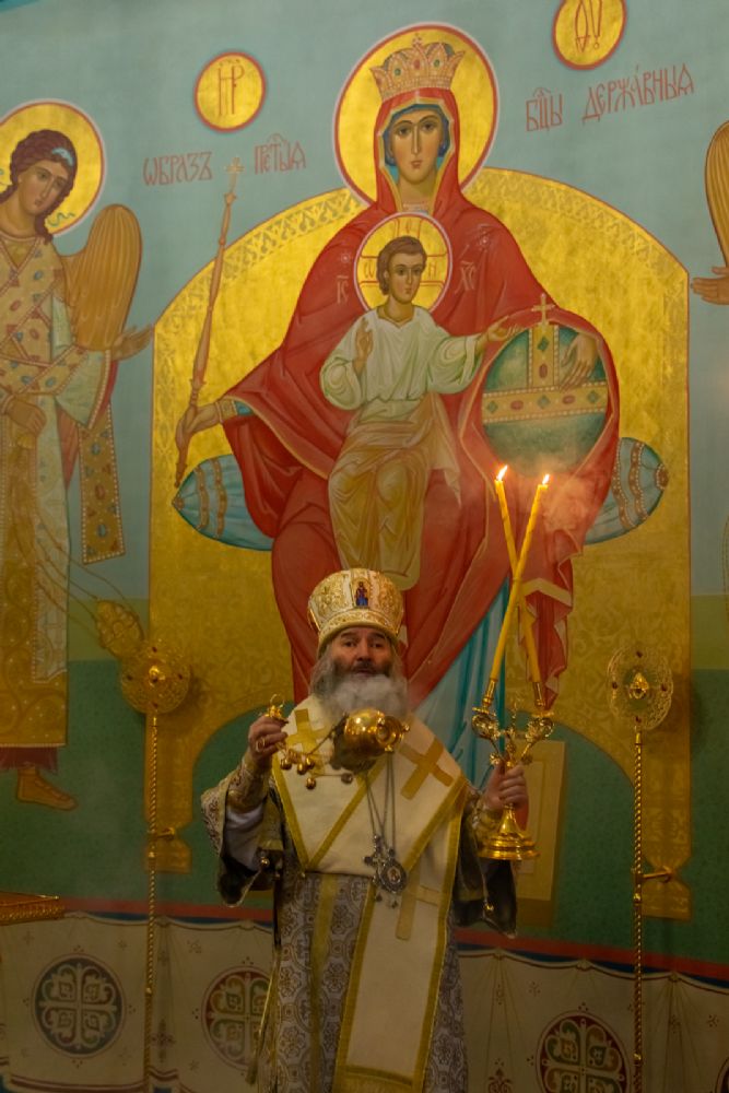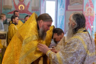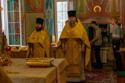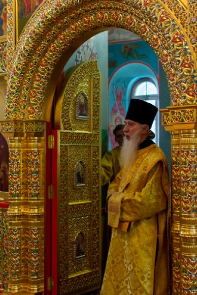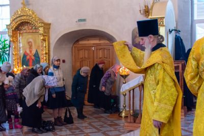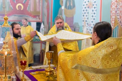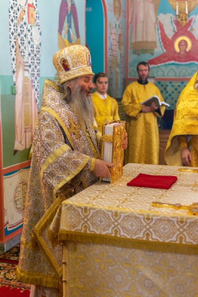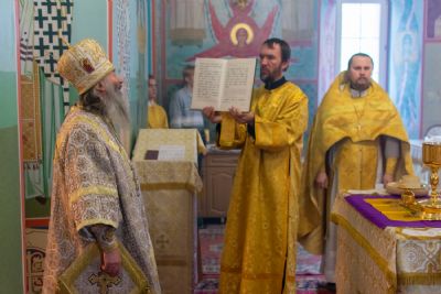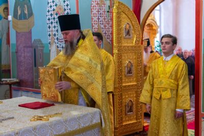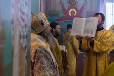 Владыке сослужили настоятель храма протоиерей Александр Бачурин, клирики храма иереи Константин Домрачев, Виктор Умрихин, диакон Димитрий Лукьянов и клирик храма Рождества Пресвятой Богородицы с. Семеновка протодиакон Михаил Козловский. Песнопения исполнял хор храма.