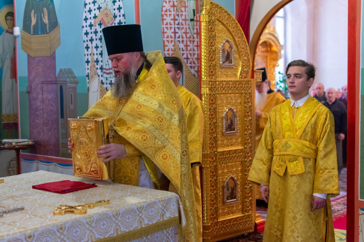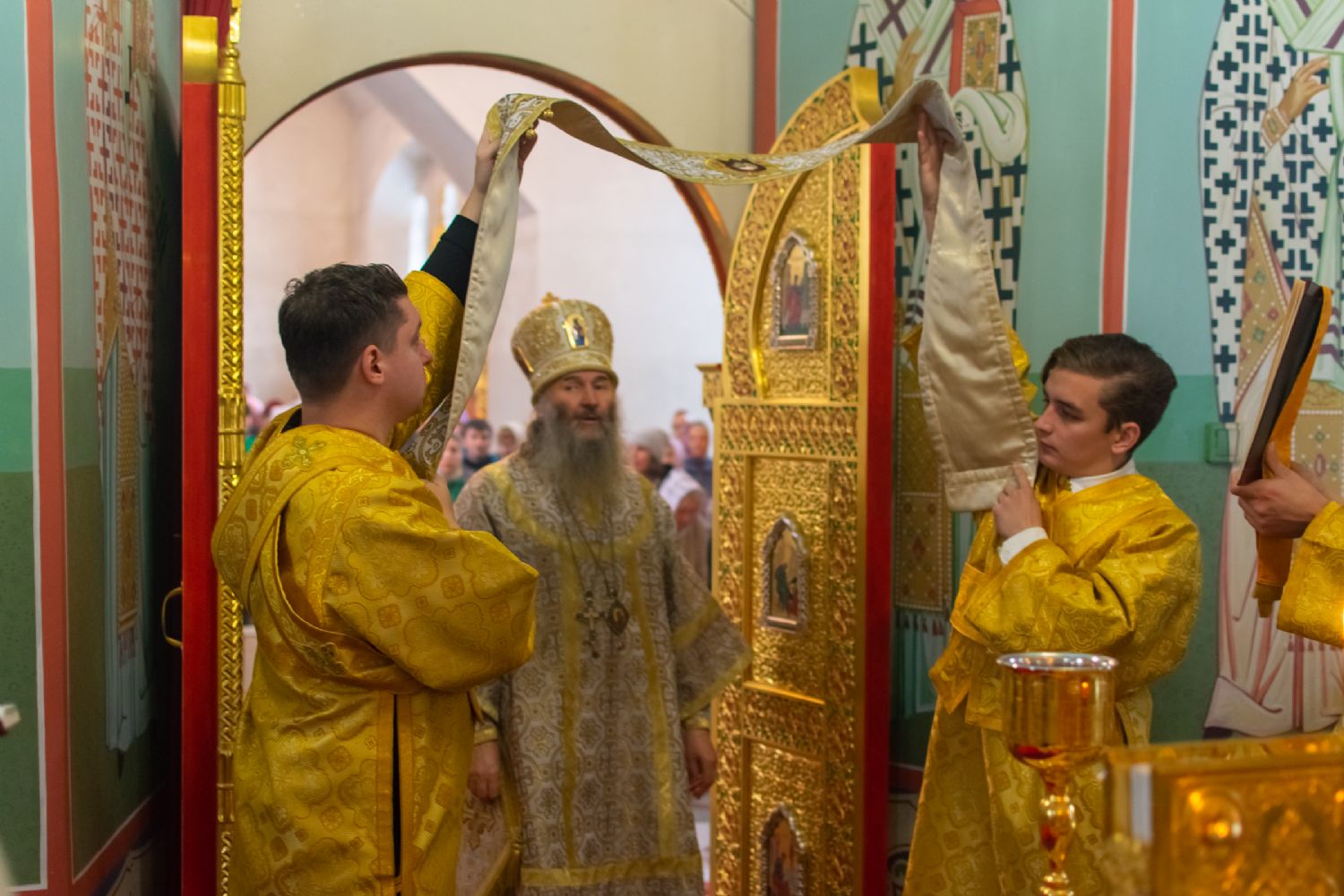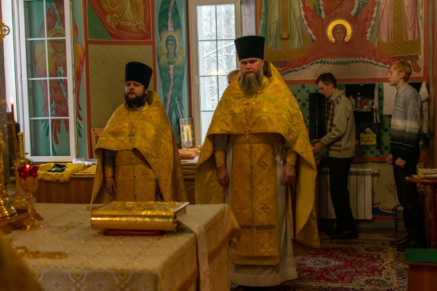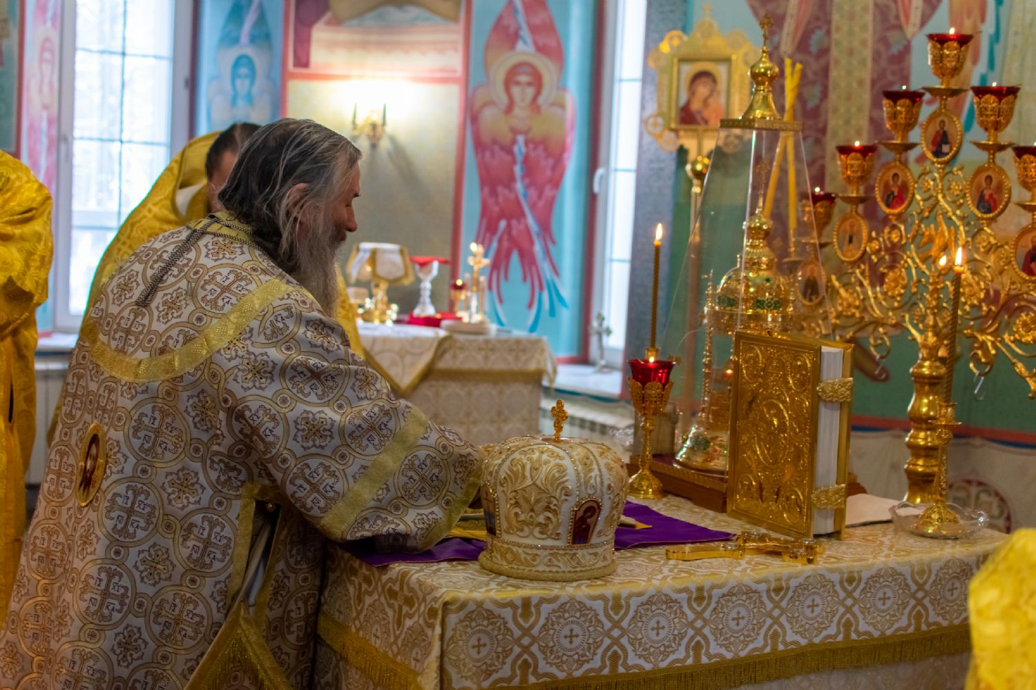 Владыке сослужили настоятель храма протоиерей Александр Бачурин, клирики храма иереи Константин Домрачев, Виктор Умрихин, диакон Димитрий Лукьянов и клирик храма Рождества Пресвятой Богородицы с. Семеновка протодиакон Михаил Козловский. Песнопения исполнял хор храма.