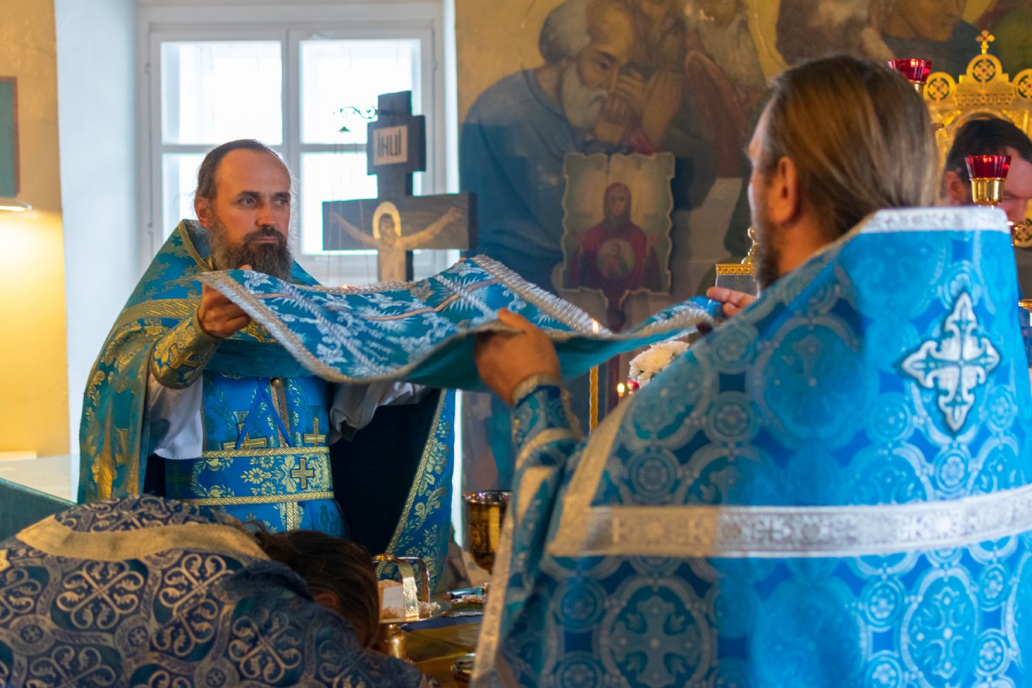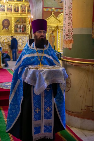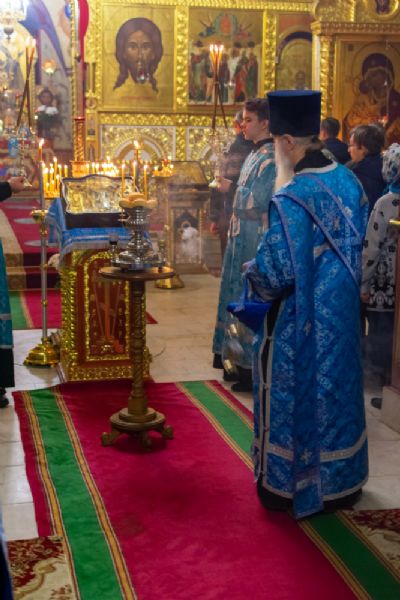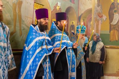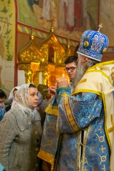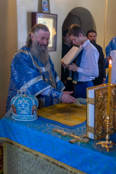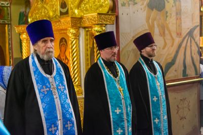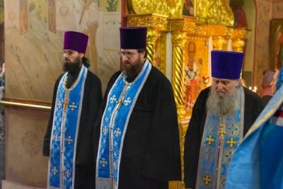 За Всенощным бдением Владыке сослужили настоятель Вознесенского собора протоиерей Евгений Кутырев, клирики собора протоиерей Георгий Втюрин, иереи Александр Козлов, Владимир Глебов, Александр Деревяшкин, диакон Владимир Лихачев и клирик храма Рождества Пресвятой Богородицы с. Семеновка протодиакон Михаил Козловский. Песнопения исполнял хор храма.