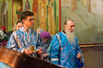 После Литургии прошел крестный ход вокруг храма с кроплением святой водой и чтением Евангелия.