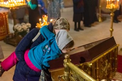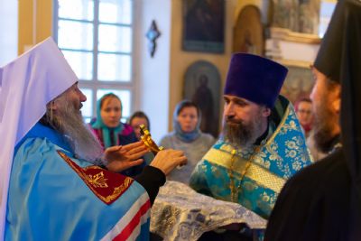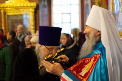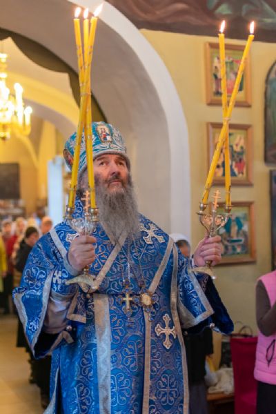 Богослужение началось торжественной встречей Владыки и облачением в центре храма.