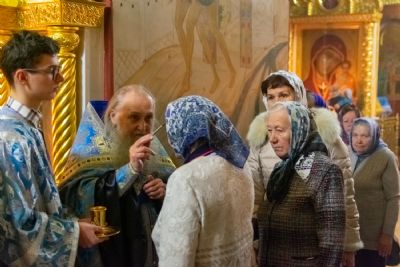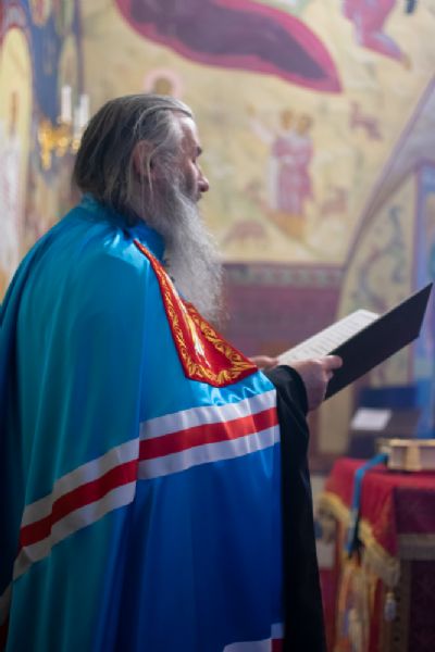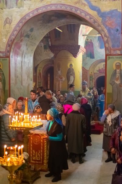 Читались зачала из послания апостола Павла к Филиппийцам о воплощении Сына Божия и из Евангелия от Луки о служении Марфы и Марии.