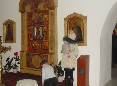 Протоиерей Иоанн Барсуков отслужил молебен Пресвятой Богородице перед Мироносицкой иконой, помазал паломников освященным маслом. Далее ребята приложились к другим святыням храма, и инокиня Вера повела всех на экскурсию по территории обители.