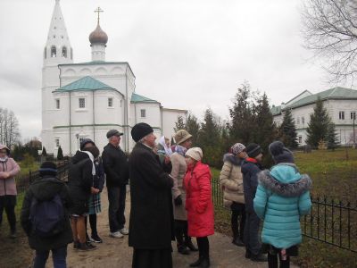 И вот, наконец, Ежово – издалека видна высокая белоснежная колокольня монастыря. У ворот нас встретила инокиня Вера. Она ведет нас в старинный храм, освященный в честь святых Жен-Мироносиц. Здесь хранится главная святыня монастыря – Мироносицкая икона Божией Матери. Прикладываемся к святому образу, под руководством учителя церковного пения Елены Седуновой поем тропарь, кондак и величание Пресвятой Богородице. И слушаем интересный рассказ инокини Веры о истории монастыря и его жизни.