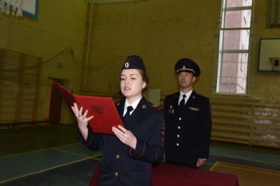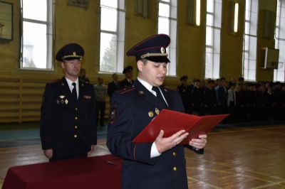 Мероприятие началось с построения личного состава слушателей Центра профессиональной подготовки. Под звуки Гимна молодые офицеры, прошедшие испытательный срок, присягали на верность Российской Федерации и её народу. В присутствии своих коллег, руководителей и близких они поклялись «уважать и защищать права и свободы человека, быть мужественными, честными и бдительными, не щадить своих сил в борьбе с преступностью».