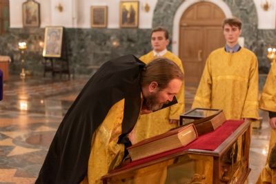 В этот день вспоминалась жизнь святителя Димитрия Ростовского и великомученицы Параскевы Пятницы. За Всенощным бдением Владыке сослужили: секретарь Йошкар-Олинского епархиального управления иеромонах Серафим (Пасанаев), ключарь собора протоиерей Сергий Поглазов, клирики собора иереи Евгений Самойлов, Артемий Промович, Никифор Захаров, диаконы Игорь Коваль, Андрей Дружинин и клирик храма Рождества Пресвятой Богородицы села Семеновка протодиакон Михаил Козловский. Песнопения исполняли младшая и старшая группы детско-юношеского хора «Благовест».
