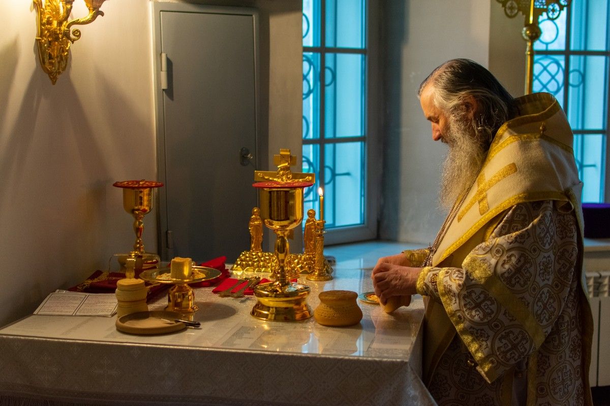 За Вечерней с пением акафиста Владыке сослужили настоятель храма протоиерей Александр Бачурин, клирики храма и клирик храма Рождества Пресвятой Богородицы с. Семеновка протодиакон Михаил Козловский. Песнопения исполнял хор храма. Акафист вместе со священством пели прихожане.
