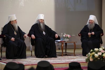 В президиуме встречи вместе с ним находились митрополит Йошкар-Олинский и Марийский Иоанн, митрополит Вятский и Слободской Марк, митрополит Симбирский и Новоспасский Иосиф, митрополит Оренбургский и Саракташский Вениамин, митрополит Саранский и Мордовский Зиновий, настоятельница Свято-Троицкого Серафимо-Дивеевского монастыря игумения Сергия (Конкова), настоятельница московского Зачатьевского ставропигиального монастыря игумения Иулиания (Каледа).