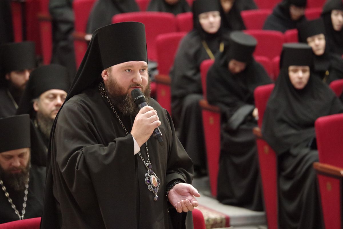 В начале встречи к собравшимся обратился владыка Георгий: «Сегодня у нас большая духовная радость и утешение. Мы совершили Божественную литургию в Саровском монастыре, затем — захоронение останков братии, обретенных во время строительства Успенского собора. И сейчас нам предстоит благое дело — обсудить проект документа «Священнослужение монахов на приходах». Общая позиция комиссии Межсоборного присутствия по вопросам организации жизни монастырей и монашества — не надо бы монахам служить на приходах, но обстоятельства могут складываться по-разному. Эта традиция получила распространение в советское время, когда священников не хватало. Другой аспект этого вопроса — миссия в других странах. Как правило (это повелось с еще дореволюционных времен), слово Божие за пределами Отечества несли людям монашествующие в священном сане. Такая практика существует и сейчас. Кроме того, в некоторых епархиях нашей страны нет мужских монастырей, и иеромонахи вынуждены служить на приходах. Все эти моменты нужно принимать во внимание и обсуждать.