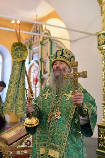 После многолетия глава Вятской митрополии поздравил верующих с праздником и, в частности, сказал: "Мы сегодня собрались в этом святом храме, чтобы едиными усты и единым сердцем прославить Бога и Его угодника, приобщиться к этой благодати и укрепить свои духовные силы".