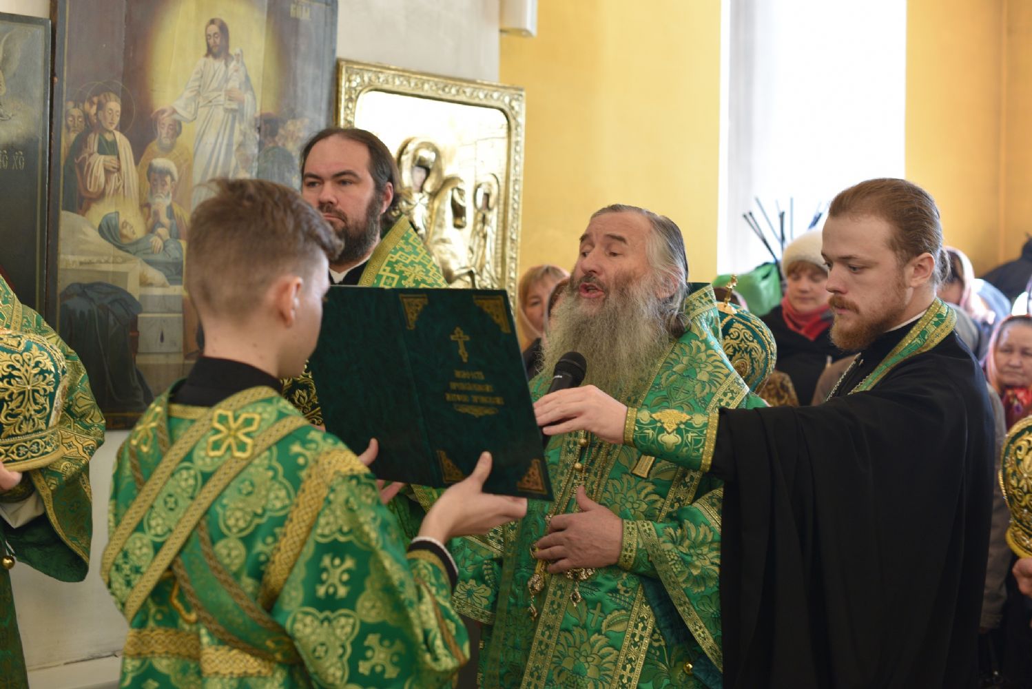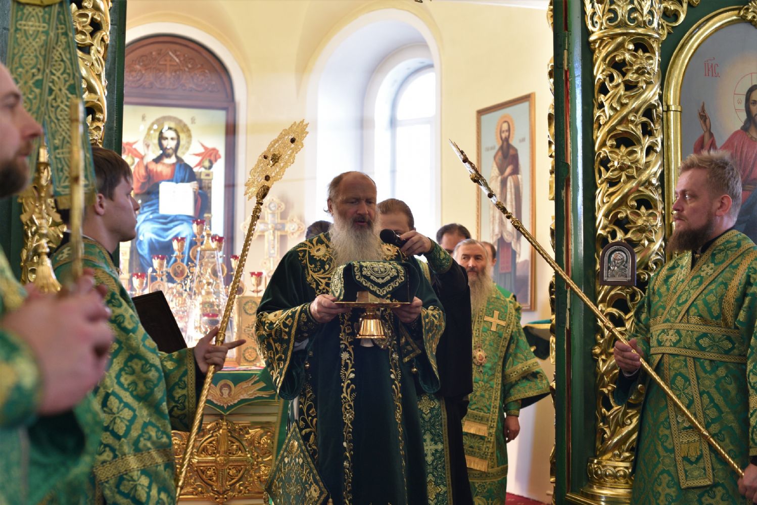 Божественную литургию совершил митрополит Вятский и Слободской Марк. Его Высокопреосвященству сослужили митрополит Йошкар-Олинский и Марийской Иоанн, епископ Альметьевский и Бугульминский Мефодий, епископ Яранский и Лузский Паисий, епископ Уржумский и Омутнинский Иоанн, епископ Волжский и Сернурский Феофан и духовенство Вятской митрополии.