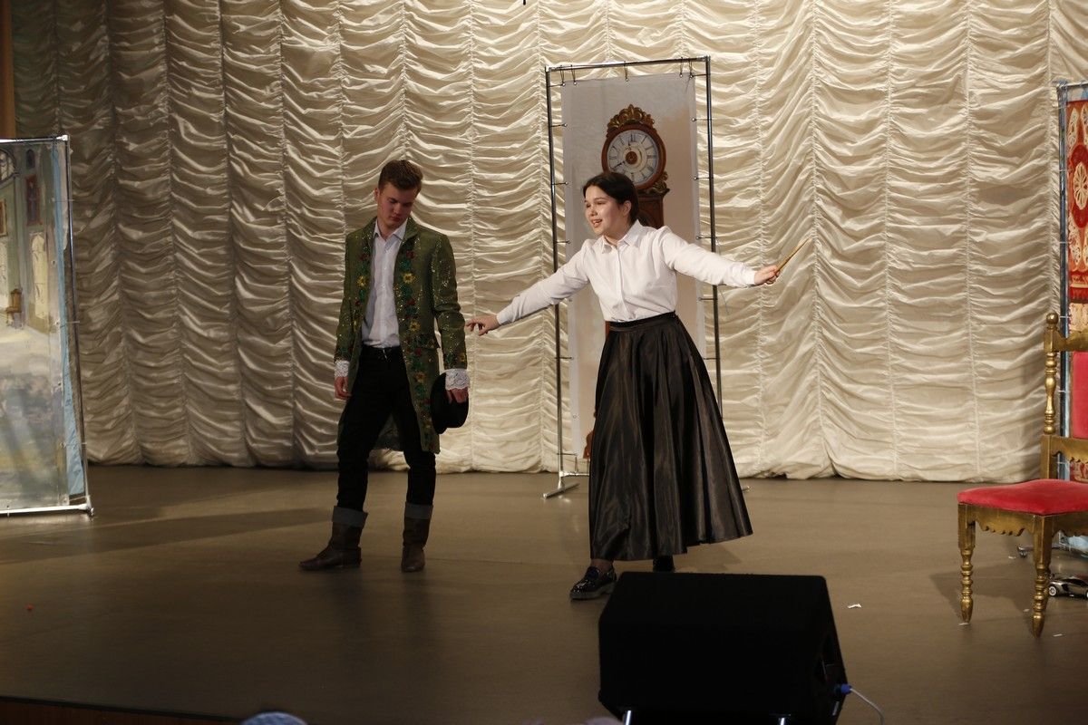 Ребята из старшего хора прекрасно справились с игрой и безупречно смогли передать замысел режиссера. Не менее профессионально они справились и с музыкальной частью спектакля – бальными танцами.