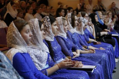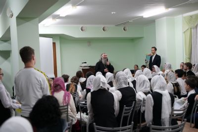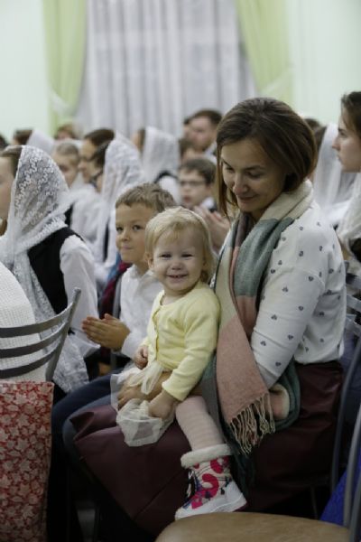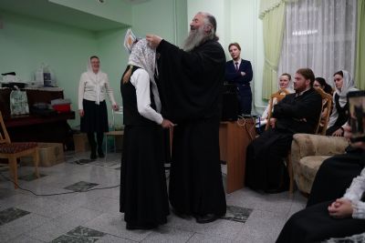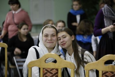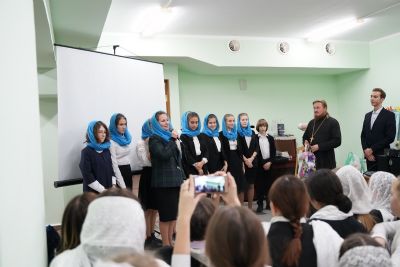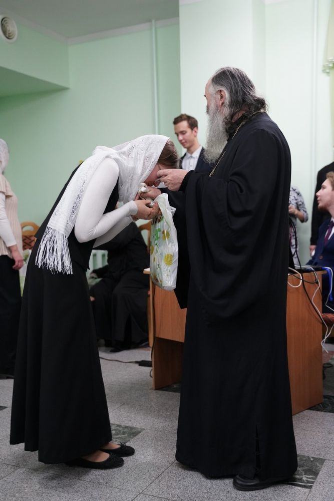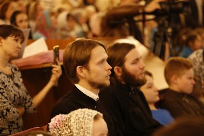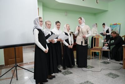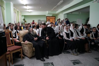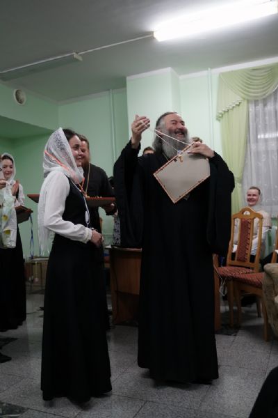Здесь состоялось посвящение в хор новых певцов. Четыре девочки, которые уже несколько лет пели в младшем хоре, пройдя «экзамен» у Владыки, пополнили ряды старшего хора.
