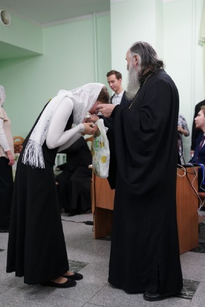 А вот несколько человек покинули хор. Для них устроили настоящие проводы: подарили подарки, а митрополит Иоанн произнес напутственные слова. Он пожелал ребятам не забывать Божий храм, чтобы избежать множества скорбей, которые ожидают каждого человека во взрослом мире. Кто-то из них вышел замуж, кто-то собирается пойти в армию, а кто-то уезжает в другой город учится. Но все они навсегда останутся желанными гостями как для Владыки, так и для хора.