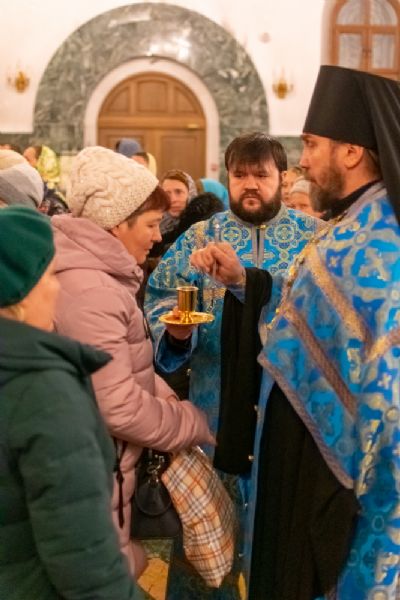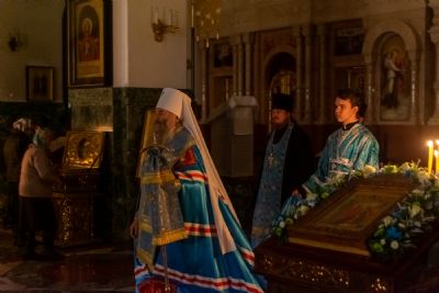 Накануне праздника митрополит Иоанн возглавил Всенощное бдение в Благовещенском Кафедральном соборе. Владыке сослужили секретарь Йошкар-Олинского епархиального собрания иеромонах Серафим (Пасанаев), ключарь собора протоиерей Сергий Поглазов, клирики собора и клирик храма Рождества Пресвятой Богородицы протодиакон Михаил Козловский. Песнопения исполнял детско-юношеский хор «Благовест» под руководством регента Надежды Поздеевой.
