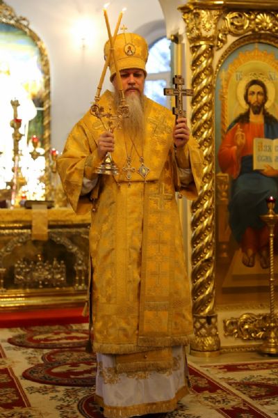Владыка указал, что на сегодняшний день есть ещё в нашем обществе много таких сторон, которые нужно изменять. «Если каждый начнет внутри себя изменять своё сердце в лучшую сторону, приносить покаяние перед Богом, то наша страна снова станет Святой Русью, - призвал архипастырь. –Наверное, все мы с вами знаем о том, что мы можем увидеть, услышать, прочитать сегодня в средствах массовой информации. Порой люди, которые выпускают в печать или по радио или по телевидению какую-то информацию, не руководствуются совсем заповедями о любви к Богу и ближнему. А порой, наоборот, заинтересованы в том, чтобы отвлечь нас с вами от веры в Единого Истинного Бога. И поэтому мы сегодня попросим у Господа, Его Пречистую Божию Матерь о даровании нам прощения наших согрешений и об укреплении всех нас в православной вере, чтобы каждый из нас был тверд в своем исповедовании православной веры, а также утверждался в добродетельной жизни, которая бы каждого из нас соделала действительно богоугодным человеком. Но враги нашей Родины из-за каких-то политических целей, временных, меркантильных, не щадят даже души людей. И пытаются в нашей стране проповедовать совершенно иной взгляд на жизнь, не такой, о котором проповедует Господь наш Иисус Христос, не такой, о котором говорит нам Иоанн Предтеча, а он говорит о покаянии, не такой, о котором нам говорят святые отцы, прошедшие путем подвижнической жизни, но совершенно иной дух Ренессанса, дух возрождения язычества. Он, к сожалению, никуда не ушел, он пытается завладеть сердцами и умами людей, чтобы многие и многие отпали от Бога, охладели к вере и в наше время. Мы помним из Евангелия, где Господь говорит нам: «зане супостат ваш диавол, яко лев рыкая, ходит, иский кого поглотити» (1Петр. 5, 8), то есть враг человеческого рода изобретает разные козни против людей, чтобы отвратить от Бога, отвести от веры, охладить желание горения перед Богом, благочестивой жизни. Всех вас прошу помолиться о том, чтобы и в наших сердцах, и в средствах массовой информации была бы духовная цензура, которой так не хватает сегодня».
