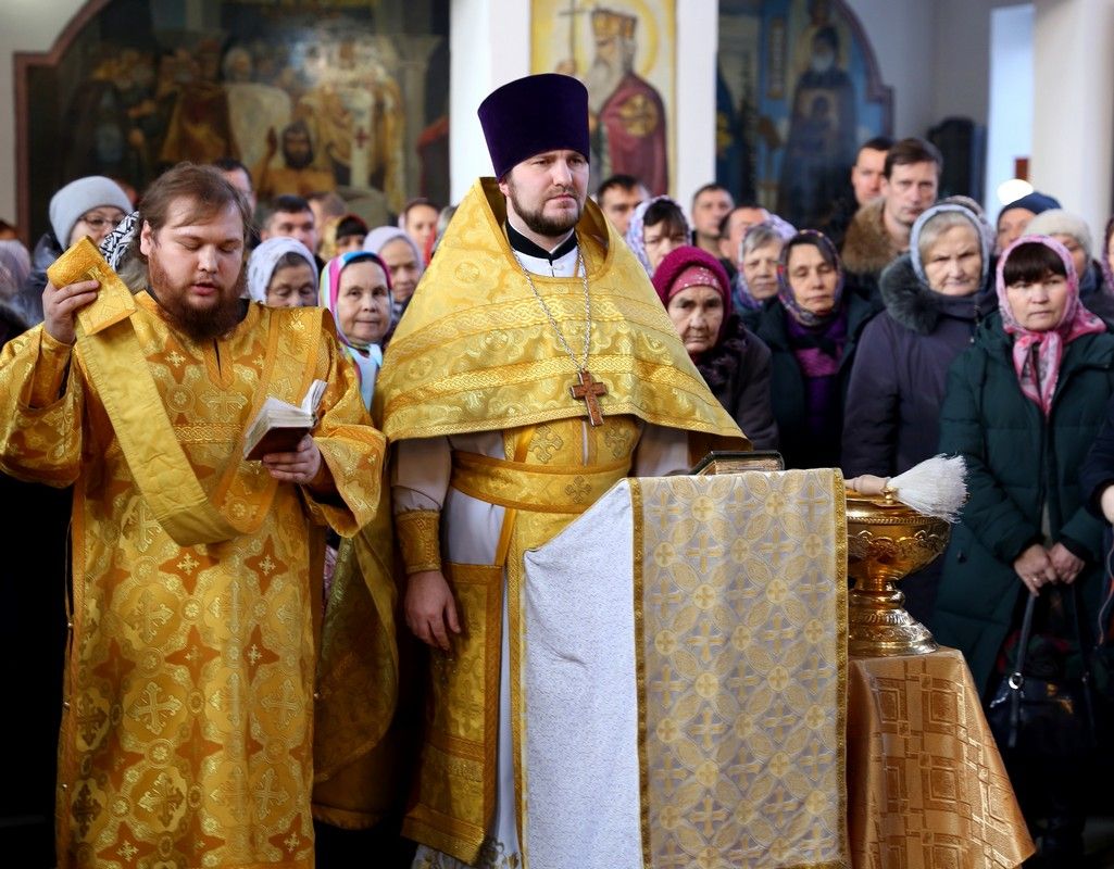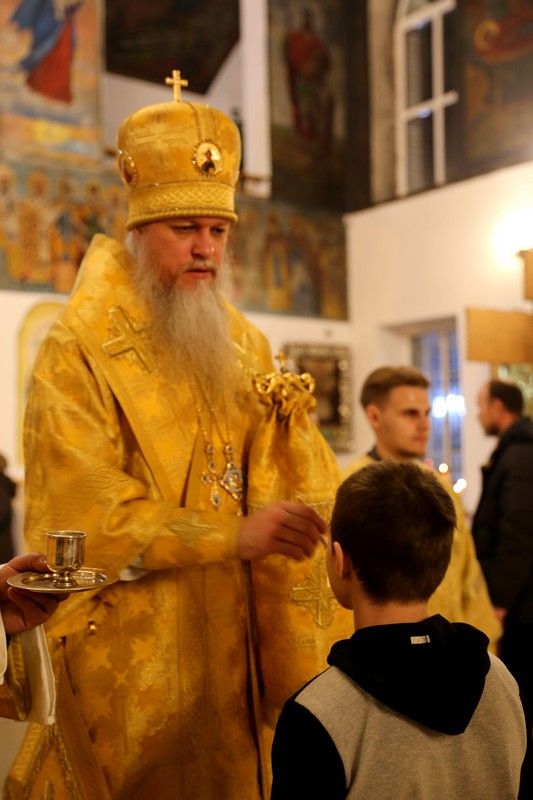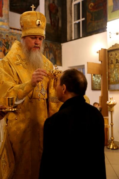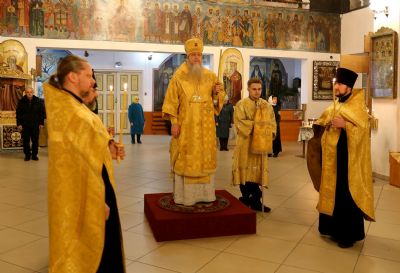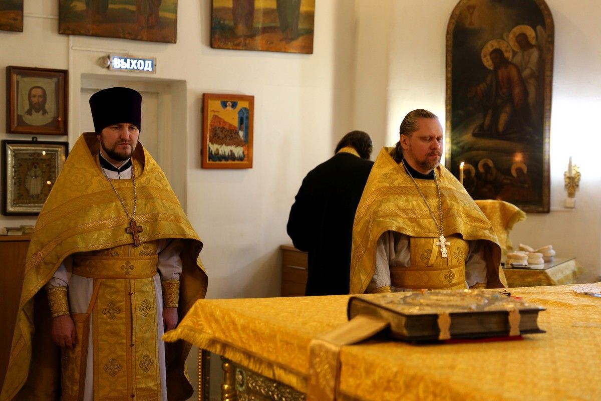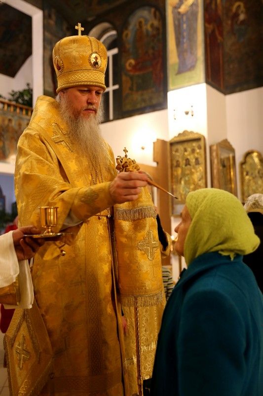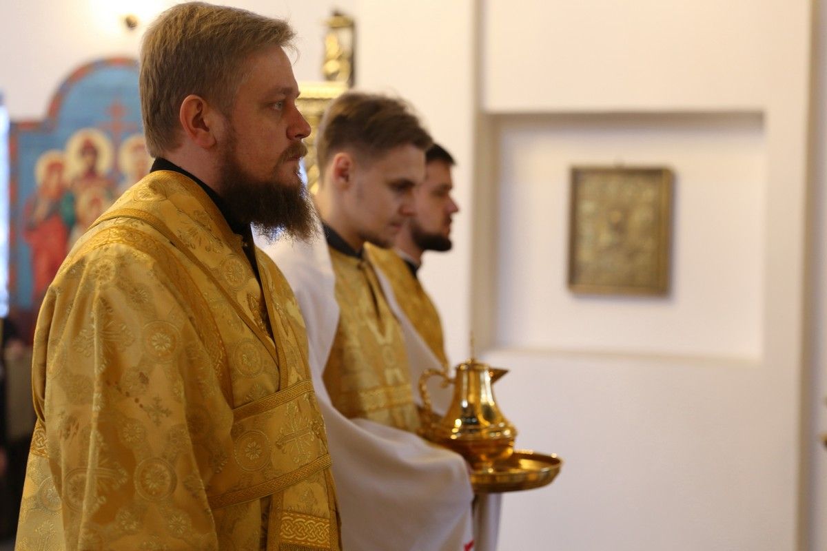 Владыке сослужили священники: протоиерей Виталий Михеев, иерей Александр Усков, иерей Сергий Першаков, иерей Виталий Ульянов, диакон Иоанн Захаров. Пел хор под управлением Тимофея Протасова.