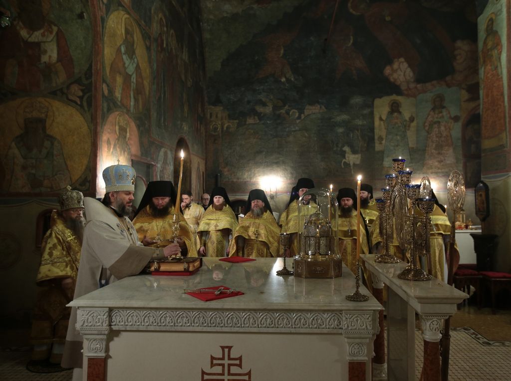 Собрание предварила Божественная литургия в храме Сретения Владимирской иконы Пресвятой Богородицы, которую возглавил архиепископ Каширский Феогност, председатель Синодального отдела по монастырям и монашеству.
