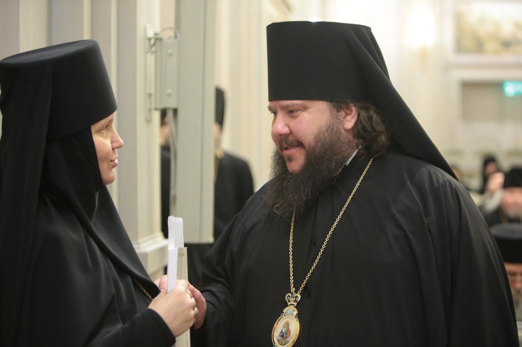 Завершая свое выступление, матушка передала слово епископу Солнечногорскому Алексию, наместнику Данилова ставропигиального мужского монастыря Москвы, возглавившему в 2019 году работу над проектом документа «О практических аспектах принятиях в монастырь и духовного окормления новоначальных» в Комиссии Межсоборного присутствия по вопросам организации жизни монастырей и монашества.
