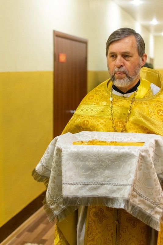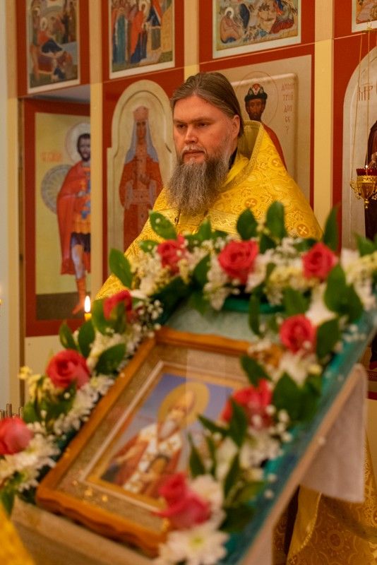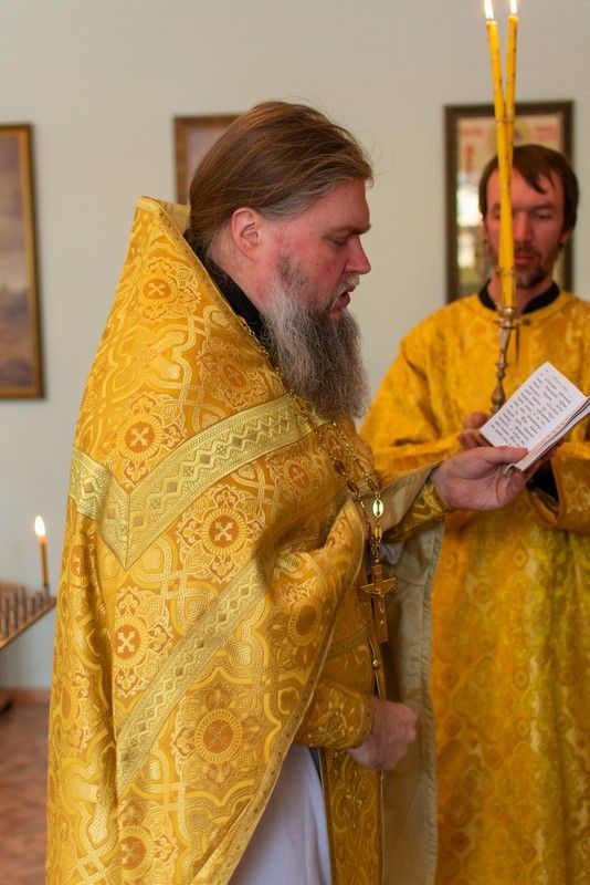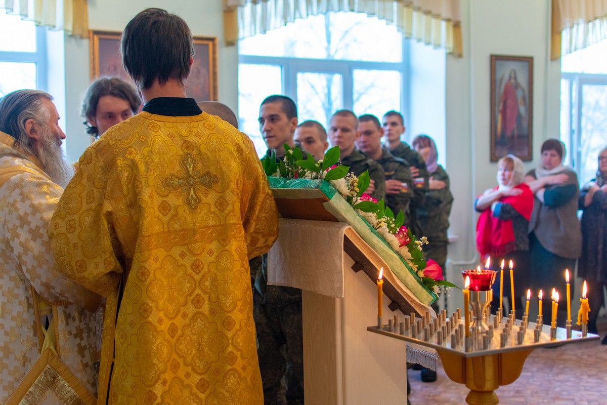 Владыке сослужили полковой священник иерей Георгий Колотов, настоятель храма преподобного Серафима Саровского протоиерей Александр Бачурин и клирик храма Рождества Пресвятой Богородицы с. Семеновка протодиакон Михаил Козловский. Песнопения исполнял хор под руководством регента Татьяны Черновой.