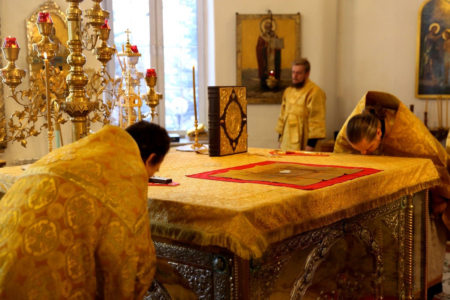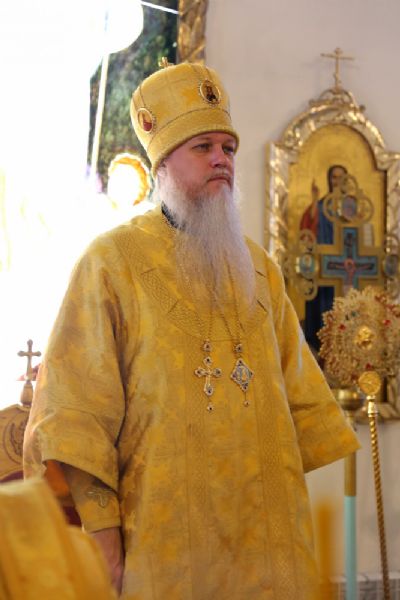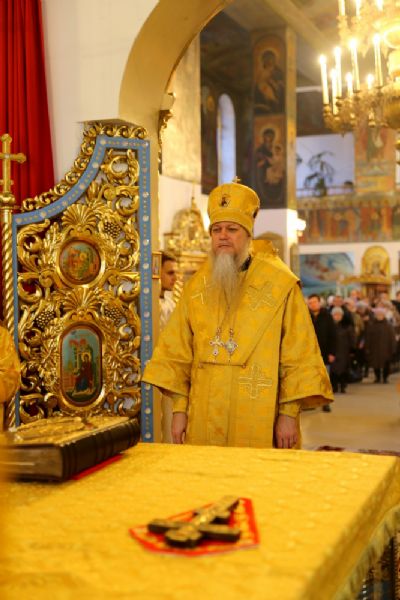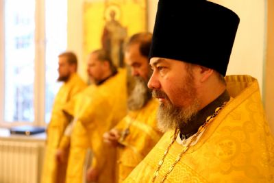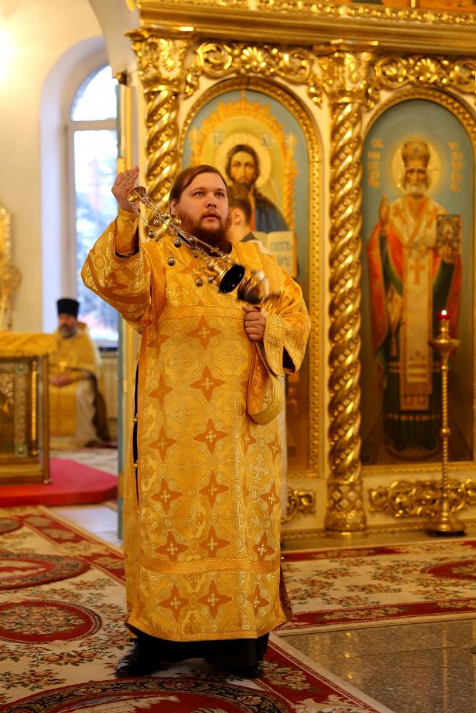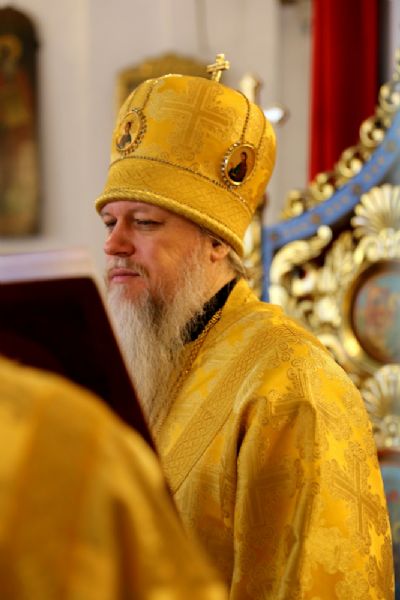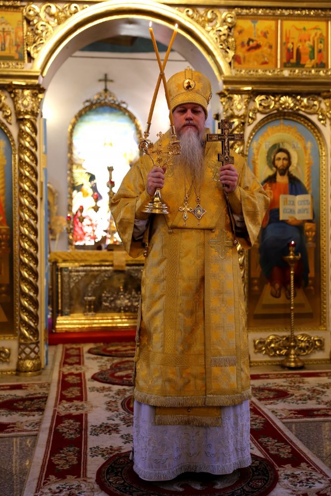Его Преосвященству сослужили клирики собора.