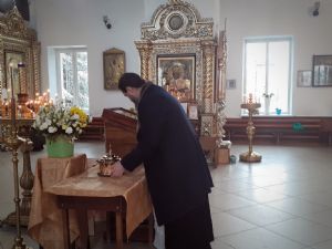 Торжественная встреча ковчега с мощами состоялась в Никольском кафедральном соборе г. Волжска. Иерей Алексий Скрябин совершил молебное пение с акафистом перед святыми мощами. В течение года ковчег побывает во всех приходах Волжской епархии.