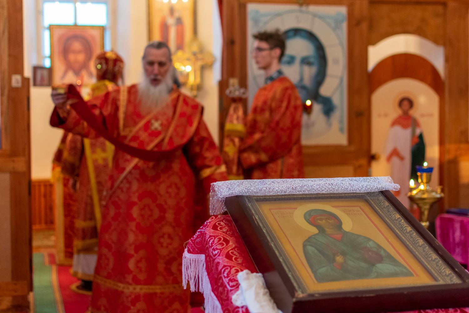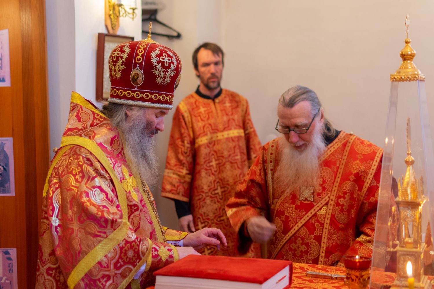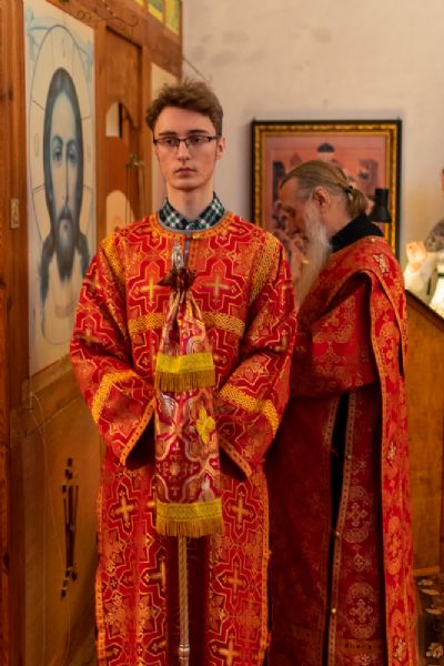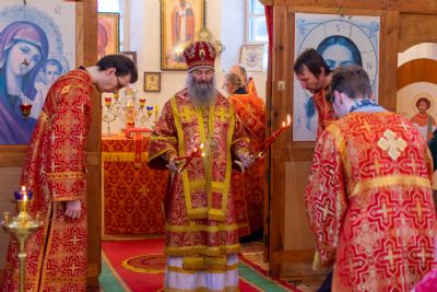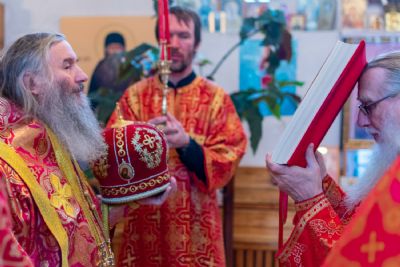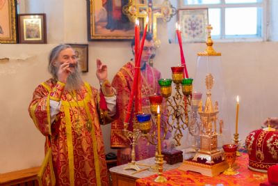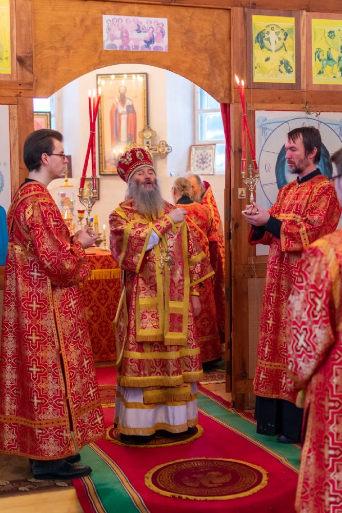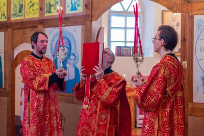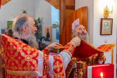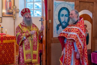 Владыке сослужили настоятель Успенского храма г. Йошкар-Олы окормляющий ИК №7 с 1995 г. протоиерей Сергий Филонов и клирик храма Рождества Пресвятой Богородицы с. Семеновка протодиакон Михаил Козловский.